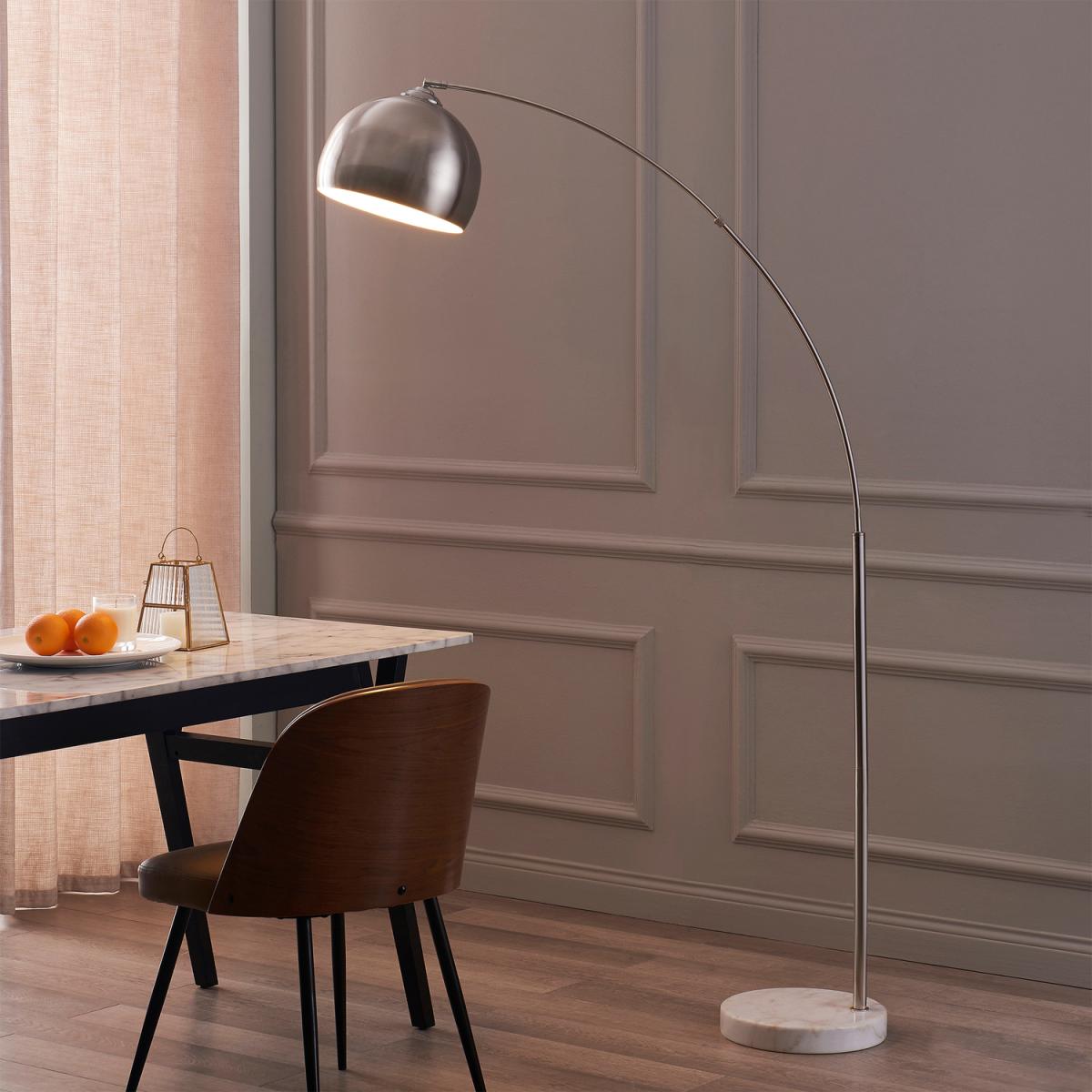 Our best selling Teamson Home Curved Standing Floor Lamp in silver nickel with white marble base is a must when looking to add a contemporary style to your Living room, bedroom or office space. The Arquer floor lamp is the epitome of style and the pinnacle of functionality. This modern reinvention of postmodern styles combines clean lines with classic finishes for a beautiful finished product. This stylish curved floor lamp features a dramatic arc that carries the eye to the contemporary design of a floating bell-style lamp shade. The unique curve of the lampstand allows the large bell-like lampshade to hang in the air appearing to defy gravity as it provides subtle style and illumination to any room. Inspired by classic styles and the artwork of the postmodern era these floor lamps were designed for the modern home where space is limited and functionality is essential. This curved floor light fixture sits on a beautiful marble base that is the perfect complement to the captivating black finish. Flick the floor switch on the Arquer luminary and enjoy the evenly spread efficient glow of a single 60 w E27 bulb. Your personality and lifestyle are completely unique and should be reflected in your home. Teamson is a global lifestyle home designs brand bringing joy into every home through beautiful, quality pieces made for stylishly comfortable everyday living. Teamson Home is our flagship brand continuing our tradition of beautiful high-quality designs including versatile indoor and outdoor furniture, bathroom furniture, indoor and outdoor lighting, and outdoor heating and dcor.