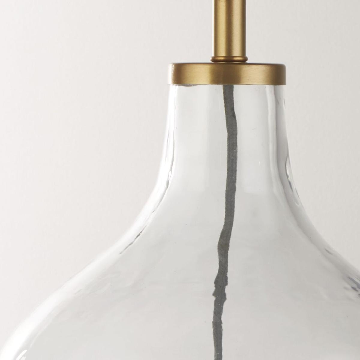 This modern smoked glass table lamp base with brass accents will work with many shades to create a unique table lamp.