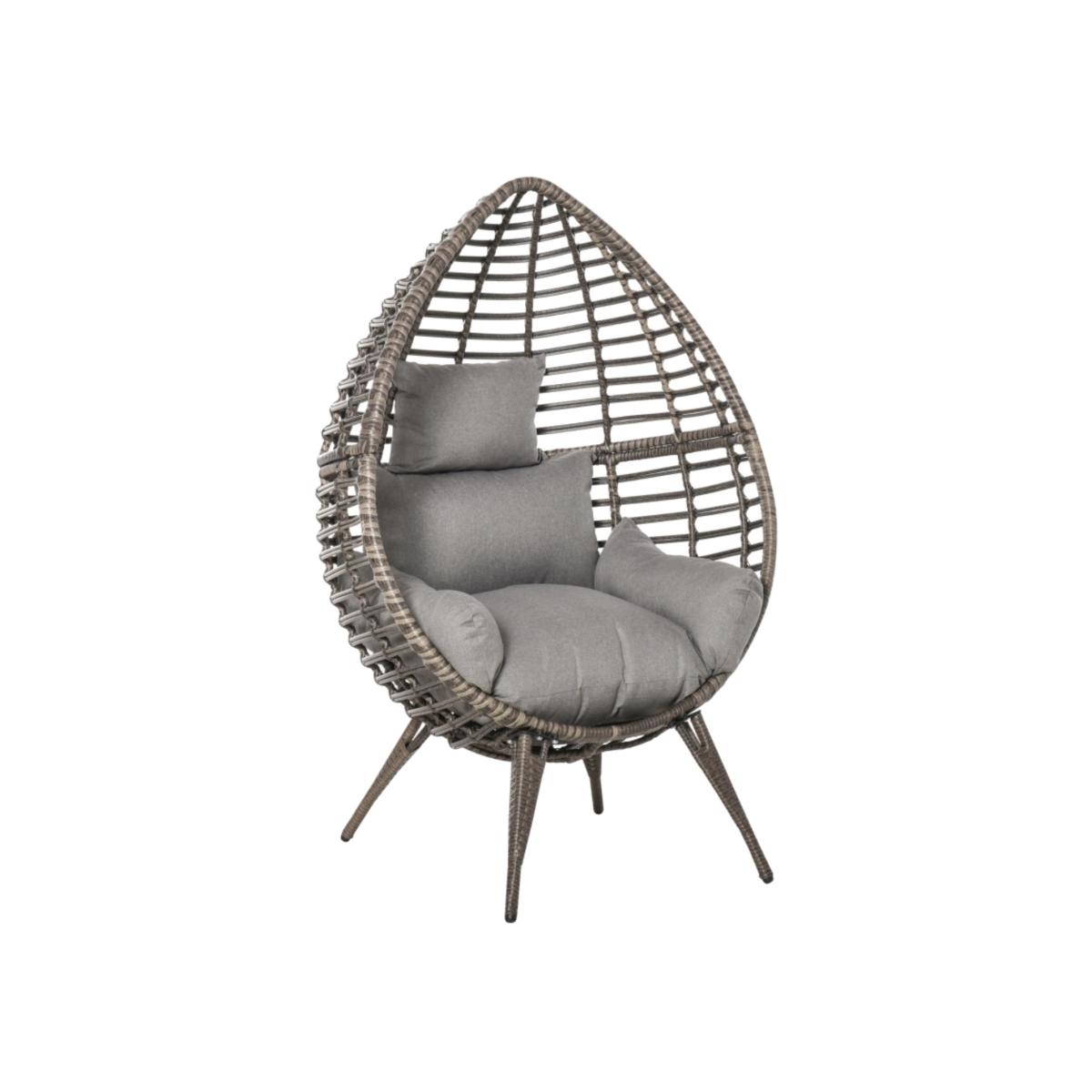 Create the perfect spot in your garden to get away from everything with this egg chair. Using metal for the base frame to ensure prolonged strength and reliability, it is crafted into a large 156cm x 101cm teardrop shaped design, with a large and deep base for you to sink back and hide away from the outside world. Hand woven and wrapped around the metal, PE wicker ensures this seat is able to cope with mild weather conditions outside, whilst the four legs with anti slip footing keep this piece even and steady on the floor all day long. It is finished with a plush inner cushion for comfort. A place you will find hard to get away from once you settle in.