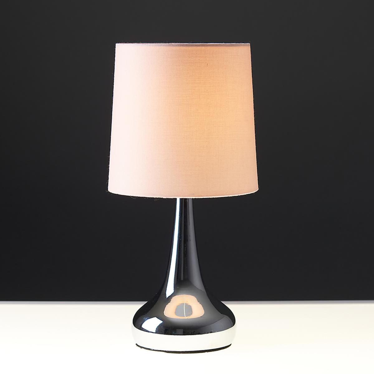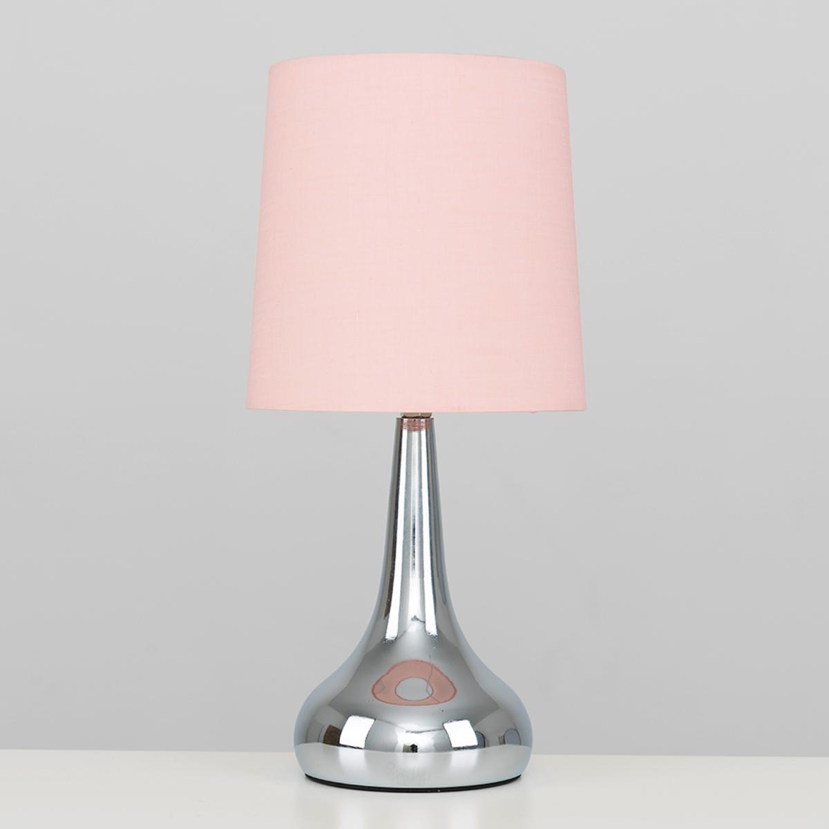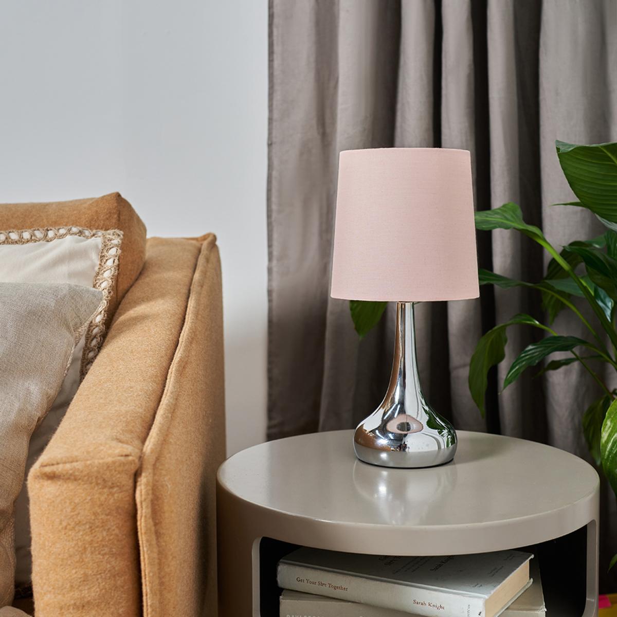 These fantastic touch table lamps with curved polished chrome bases are a wonderful addition to any contemporary home. The pink fabric shades allow the light to be dispersed evenly throughout the room. Simply touch the metal base to turn it on. The light can be set to 4 stages, off, a low level light for mood lighting, a medium level light for general lighting and a high level light which is the brightest setting to create an intense pool of light. Please Note This lamp requires dimmable bulbs. Not suitable for standard LED or energy saving bulbs.
