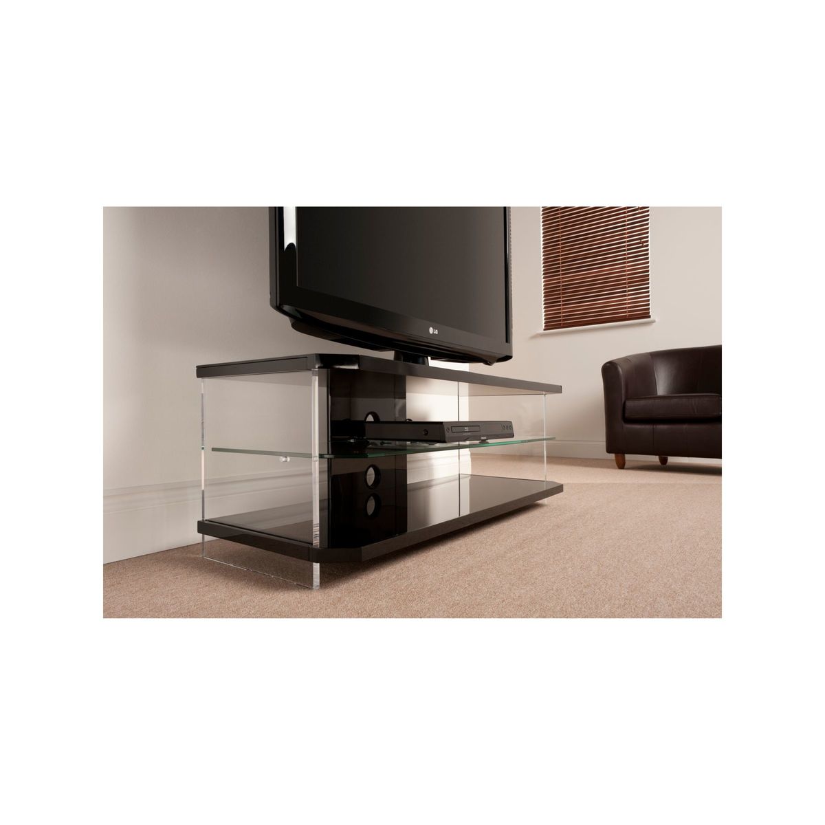 Air is a new approach to the design of A/V furniture to reflect the appearance of the latest slim, light weight screens. The clear side panels give the impression that the black shelves are floating while providing a sturdy housing for all your A/V equipment. Key benefits:Glass Shelves. Cable Management Maximum Screen Weight: 50kg Maximum Screen Size: 55-inch. Please note: Any maximum TV size quoted is a recommendation only and the exact dimensions of the TV's pedestal/feet should be checked to ensure it fits prior to purchase.