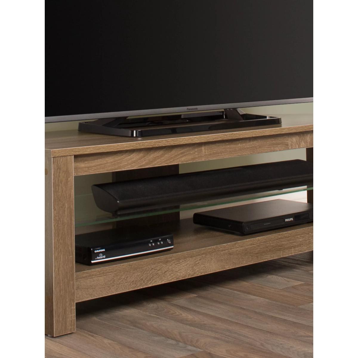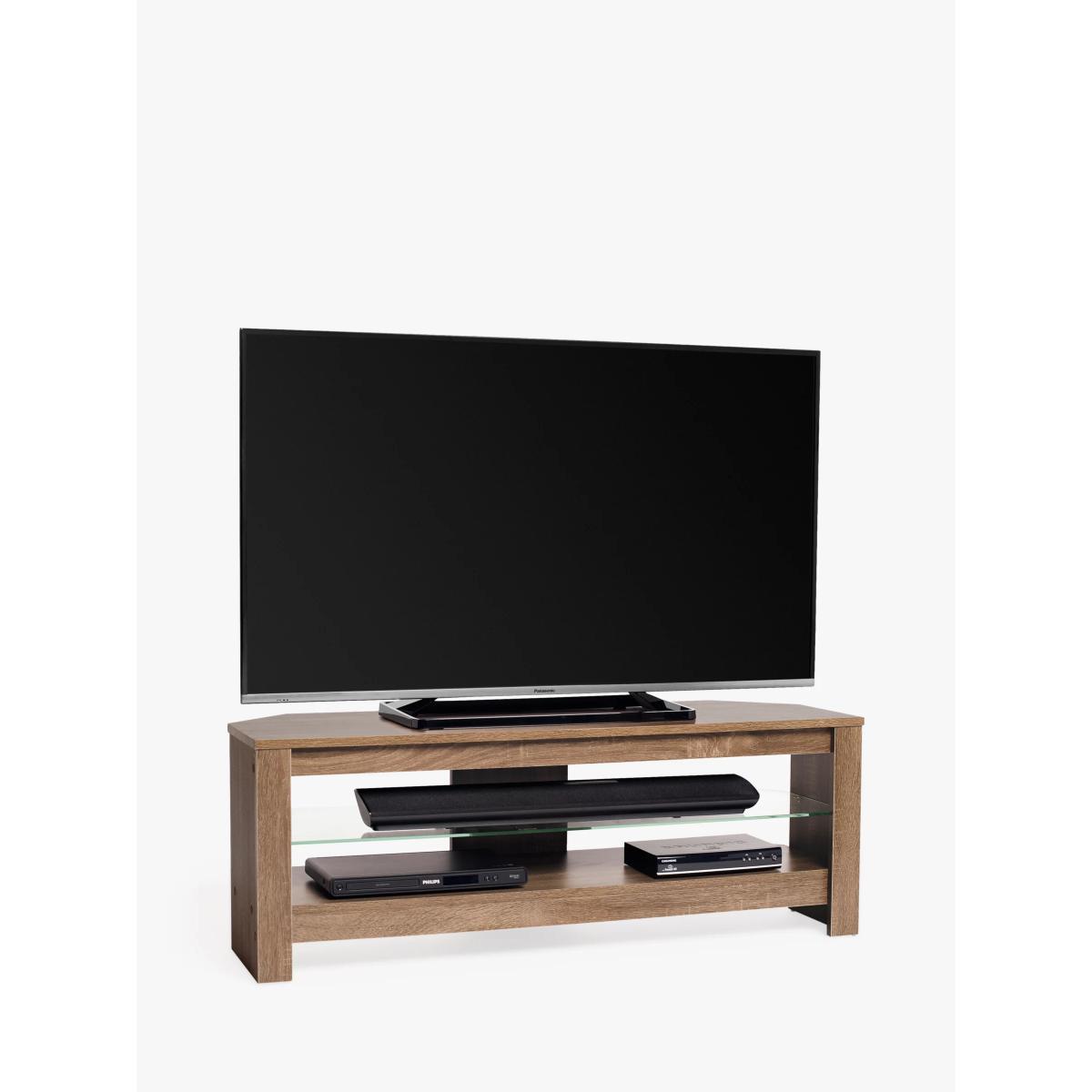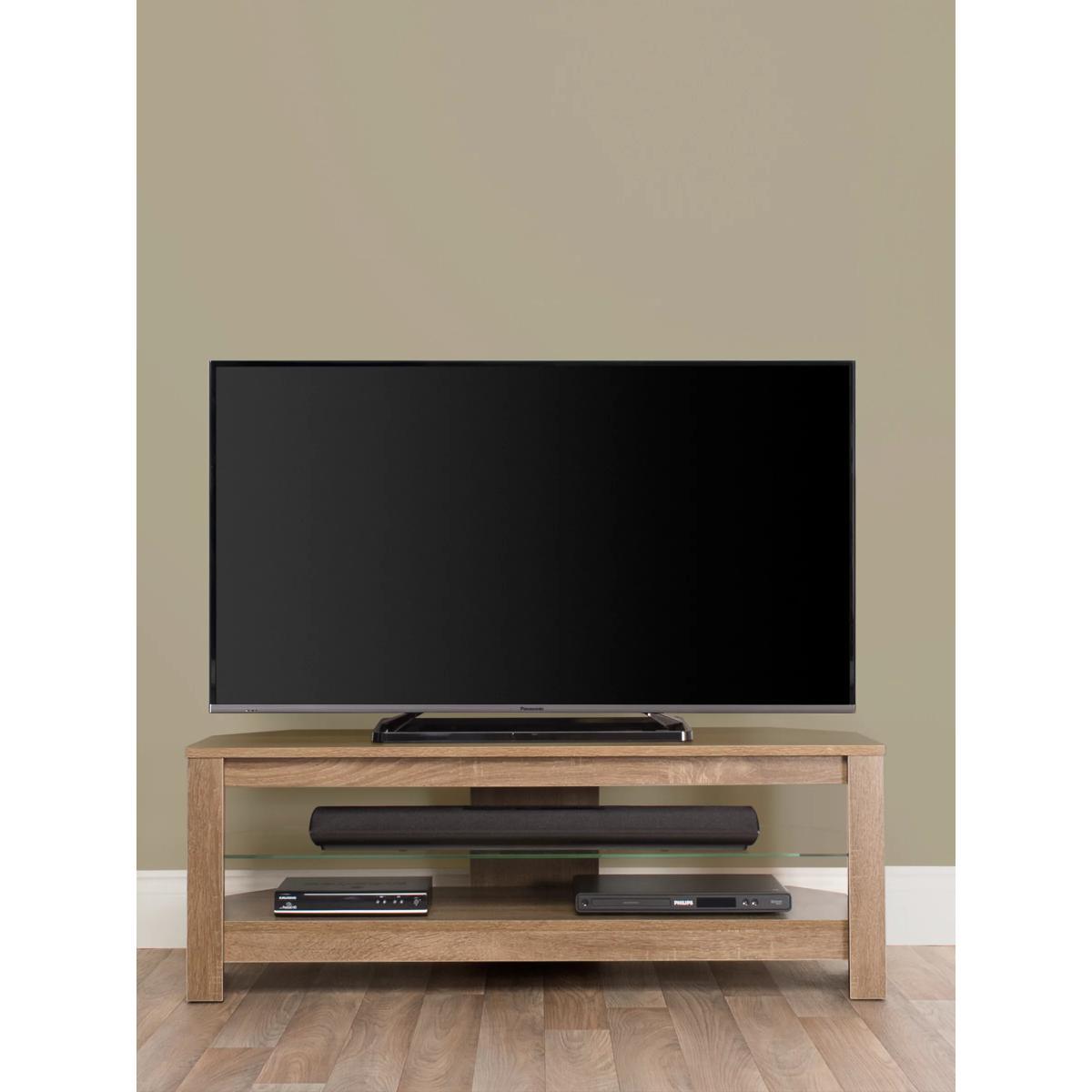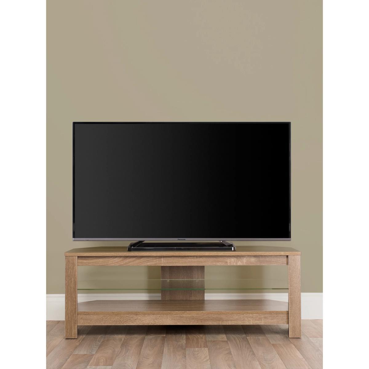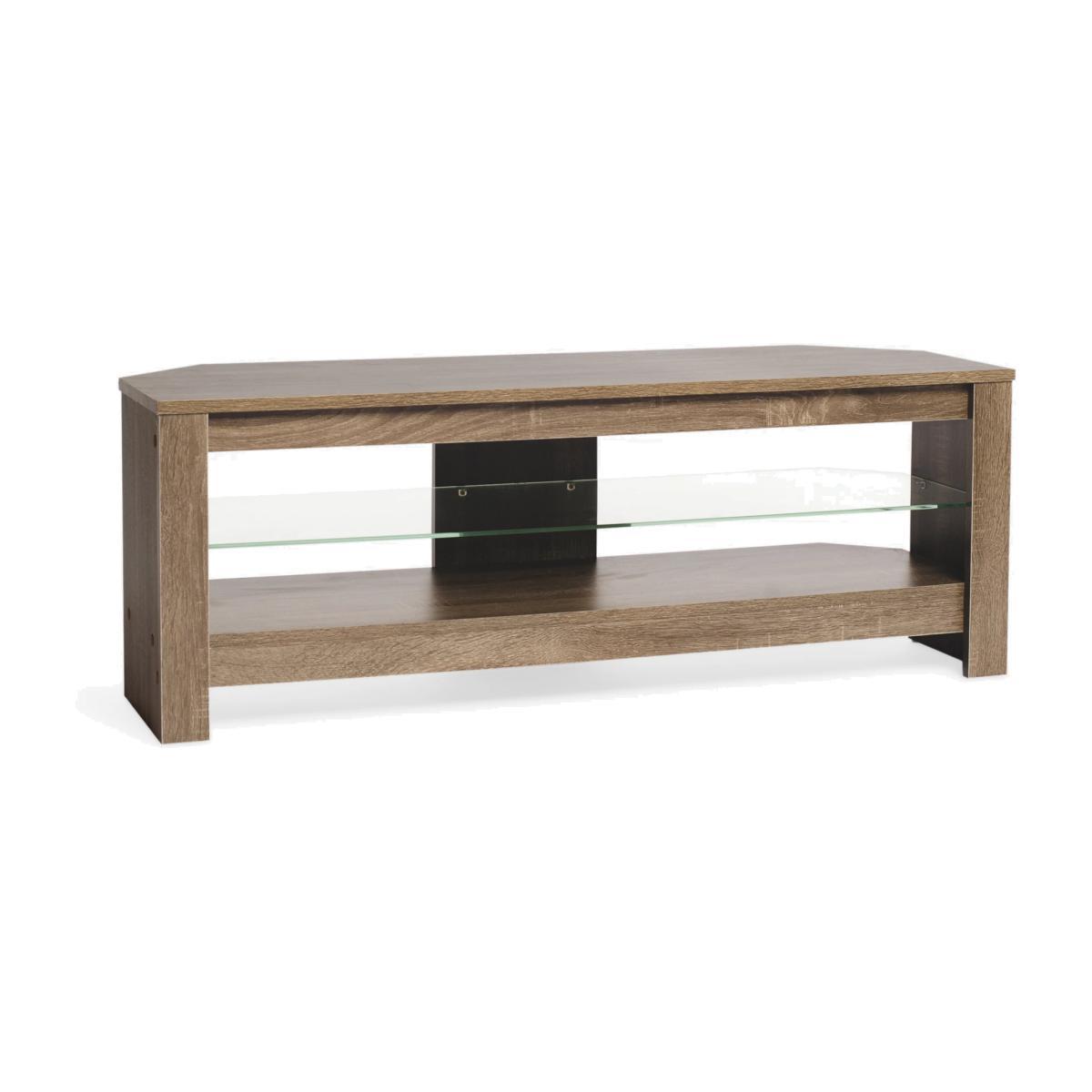 Suitable for TVs up to 55", the Calibre+ provides ample space for your TV and home entertainment equipment. Constructed from sturdy and naturally attractive oak wood, it's designed to fit equally well against the wall or in the corner of the room. Its toughened glass shelf provides an elegant way to support your consoles and media players. Together with the lower wooden shelf, they support 20kg each. Key features: Solid, minimalist design Top of unit can support up to 40kg, internal glass shelf and lower surface can support up to 20kg each Easy to assemble Any maximum TV size quoted is a recommendation only and the exact dimensions of the TV's pedestal/feet should be checked to ensure it fits prior to purchase.