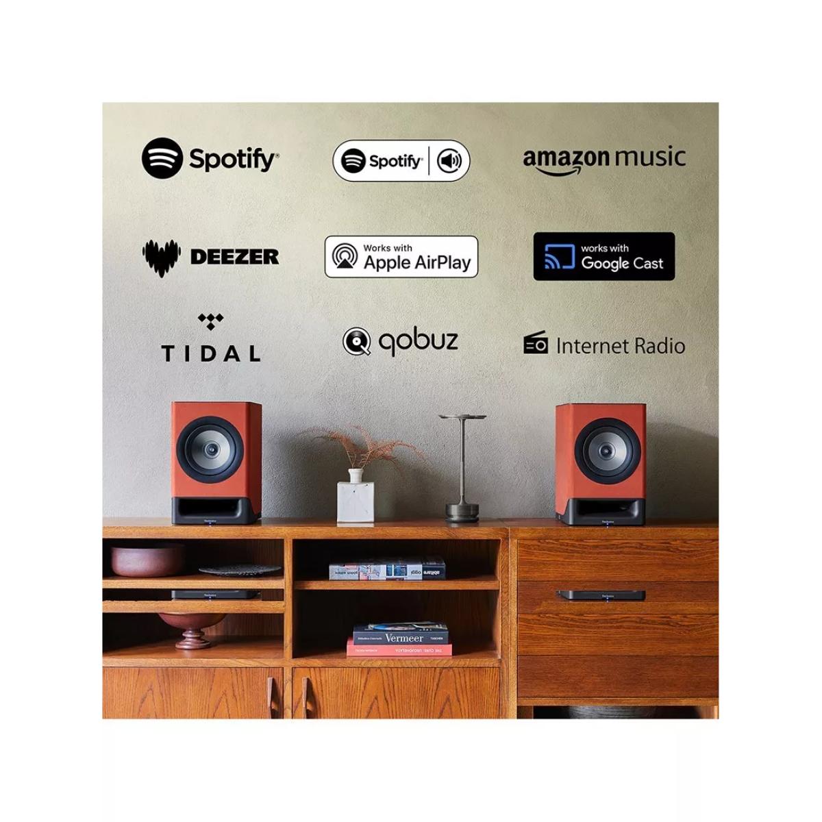 Technics first bookshelf type wireless Hi. Fi speaker system supports multiple sources such as streaming services, vinyl records, and television. The speakers are visually pleasing as interior design elements, and the SC-CX700 will fit nicely into your daily life. The SC-CX700 is cased in Dinamica™, a microfiber material with a soft suede-like texture produced in part from high-quality recycled polyester. The elegant presence of the unit fits well with any interior design. This system brings together numerous technologies — for speakers, amplifiers, and signal processing — that Technics has perfected over many years. In the SC-CX700, Technics has created a single integrated solution that faithfully reproduces music and other sounds in great detail.