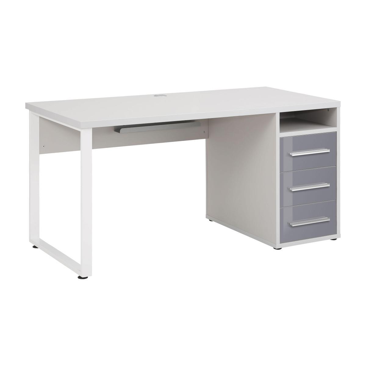 Compact contemporary furniture for your home office. Versatile computer desk with drawer unit. Great-value designer style made in Germany. The Techno single pedestal desk just makes working from home easier. Compact in size, this desk nevertheless provides a great workspace and comes with useful storage. Set on a white powder-coated steel frame, the desk’s top is made of 32 mm melamine – which is fade-, heat- and stain-resistant and is made from FSC-certified wood – and is finished with reinforced edges. The desk features a cable management system and an under desk cable tray that helps keep everything neat and tidy. The drawer unit, which can be fixed at either the right-hand or left-hand side, has a platinum grey melamine frame and is offered in your choice of grey or white for the glass drawer fronts. It has three drawers and an upper alcove. Drawers are soft-closing and have silver-coloured metal handles. Designed and made in Germany, the well-designed and very stylish Techno single pedestal computer desk is part of the Techno collection which is exclusively available online at Furniture Village. The collection includes a wide choice of cupboards and sideboard-style storage pieces. Please note. This piece requires simple self-assembly.