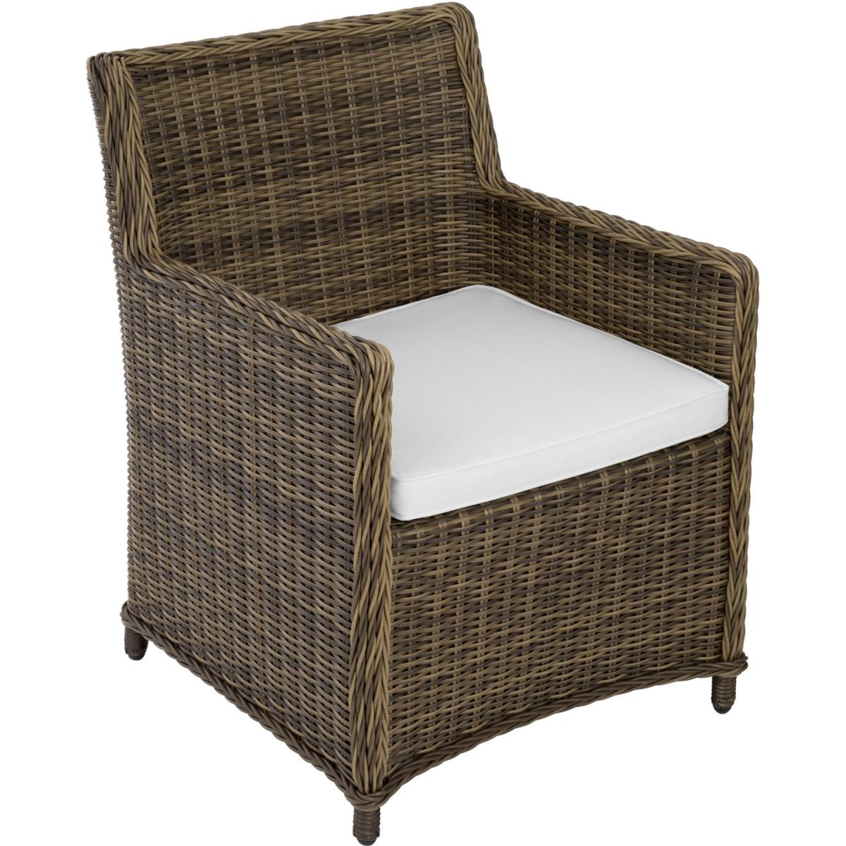 This chic and timeless rattan chair from tectake is perfect for relaxing and dining outside. The chairs thick, spongy cushion complements the rattan weave and provides a maximum feel-good factor. This dirt-repellent garden chair with water-repellent cushioning and floor-friendly plastic caps is delivered already assembled. This great outdoor furniture piece is perfect as an individual element or can be easily combined with other chairs and a table. The fine weave in durable polyrattan and the stable aluminium frame make this lovely garden chair ideal for outdoor use. Create a cosy, open air living room in your home with this rattan chair from tectake.