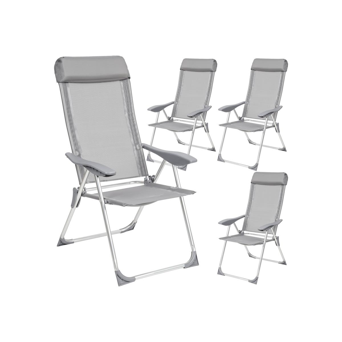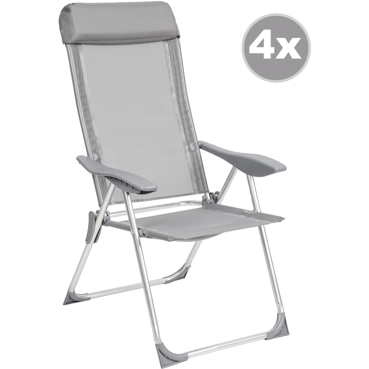 tectake 4 Folding Aluminium Garden Chairs With Headrest - Grey