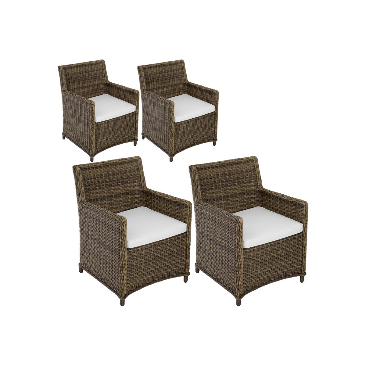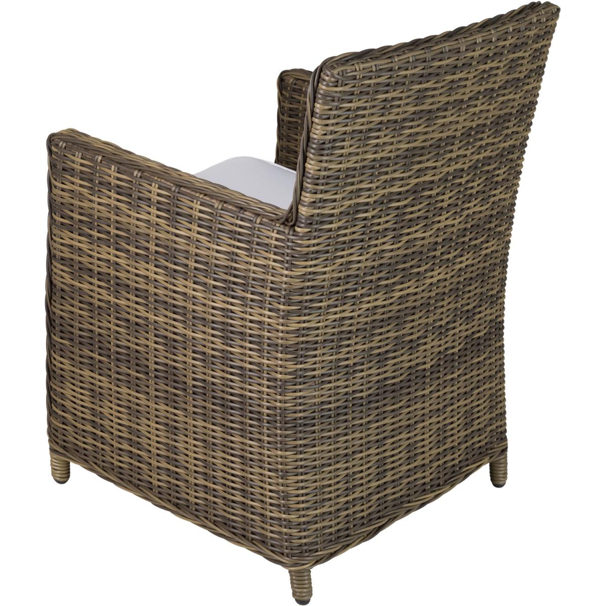 This chic and timeless rattan chair from tectake is perfect for relaxing and dining outside. The chairs thick, spongy cushion complements the rattan weave and provides a maximum feel-good factor. This dirt-repellent garden chair with water-repellent cushioning and floor-friendly plastic caps is delivered already assembled. This great outdoor furniture piece is perfect as an individual element or can be easily combined with other chairs and a table. The fine weave in durable polyrattan and the stable aluminium frame make this lovely garden chair ideal for outdoor use. Create a cosy, open air living room in your home with this rattan chair from tectake.