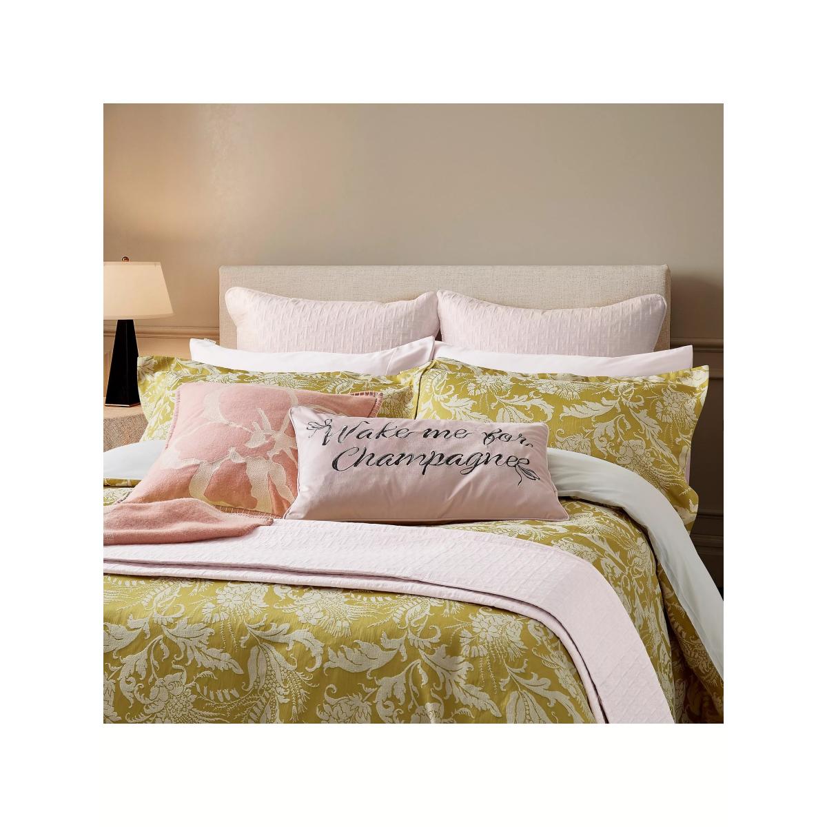 Indulge in this richly woven ornate floral design in sumptuous gold with a plain pink reverse. A beautifully presented woven Jacquard design, perfect for enhancing with contemporary accessories for a modern juxtaposition, it's made from 220 thread count cotton for a cool and comfortable night's sleep. All sets include two Oxford pillowcases. Bedding sizes To fit duvet/pillow size (cm) Oxford pillowcase to fit 50cm x 75cm excluding frill Double duvet cover to fit 200cm x 200cm Kingsize duvet cover to fit 225cm x 220cm Super kingsize duvet cover to fit 260cm x 220cm Better Cotton By choosing our cotton products, you’re supporting our investment in Better Cotton’s mission to help cotton communities survive and thrive while protecting and restoring the environment. Better Cotton Farmers are farmers who care for the environment and respect workers’ rights and wellbeing. This product is sourced via a system of mass balance and therefore may not contain Better Cotton. bettercotton.org/massbalance