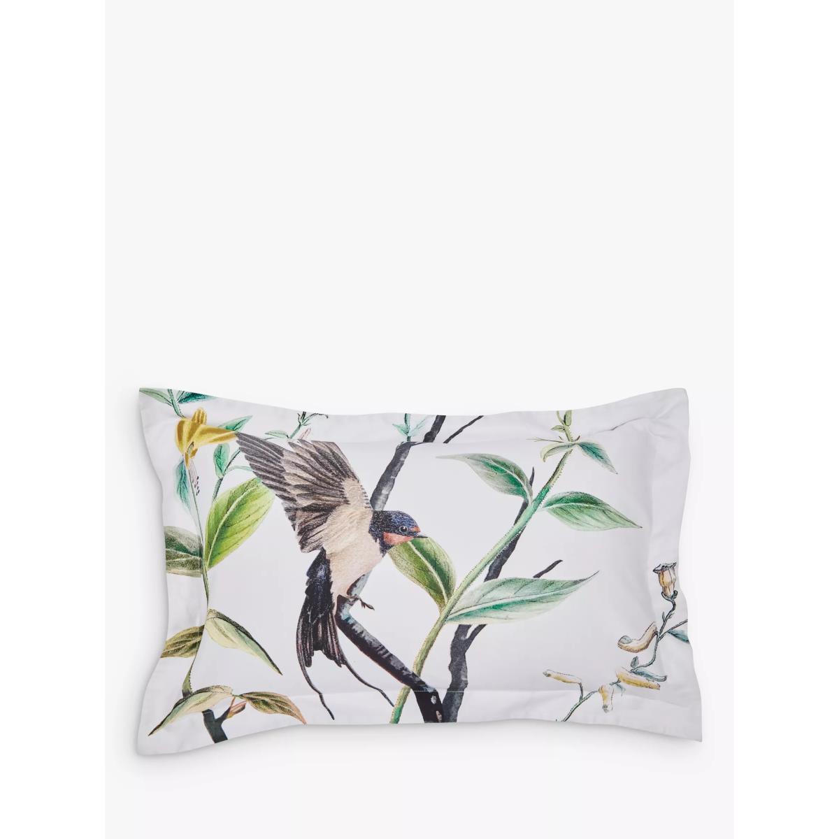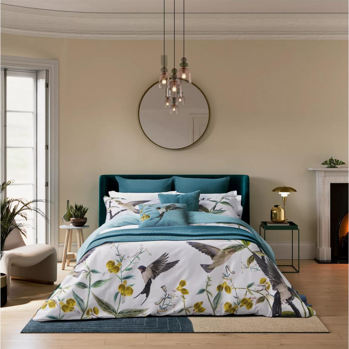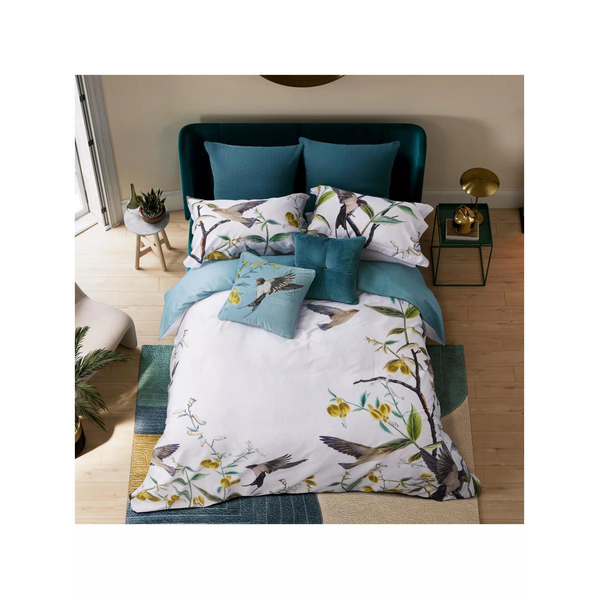 Immerse yourself in the beauty of nature with this bold botanical bedding. Luxe cotton sateen is adorned with an oversized print of hand-drawn birds and foliage, infused with a lush colour palette to really take centre stage and complemented with a plain dye reverse in a serene blue colourway. All sets include two Oxford pillowcases. Bedding sizes To fit duvet/pillow size (cm) Oxford pillowcase to fit 50cm x 75cm excluding frill Double duvet cover to fit 200cm x 200cm Kingsize duvet cover to fit 225cm x 220cm Super kingsize duvet cover to fit 260cm x 220cm