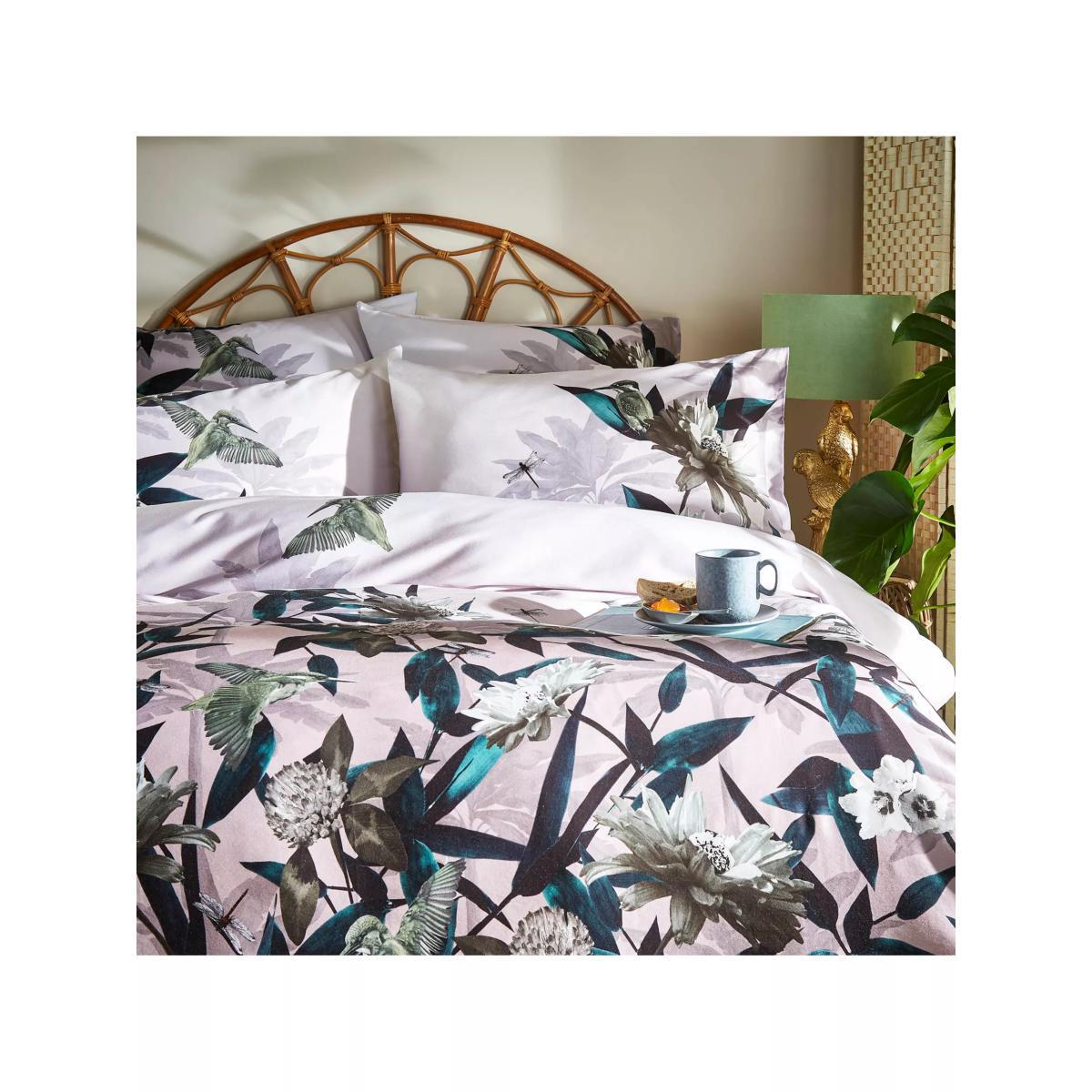 Dreaming of exotic escapes? Drift off in style with the exquisite Kingfisher bedlinen. Immerse yourself in the tropics, with vibrant jade green foliage, soaring kingfishers and an abundance of statement florals. Sweet dreams. The all-natural cotton sateen fabric will help to keep you cool and comfortable throughout the night. Please note that duvet covers and pillowcases are available to purchase separately and not in sets. Have you thought about sheeting? Shop. Bedding size: Standard pillowcase, L75 x W50cm Double duvet cover, L200 x W200cm King duvet cover,L220 x W225cm Super king duvet cover, L220 x W260cm