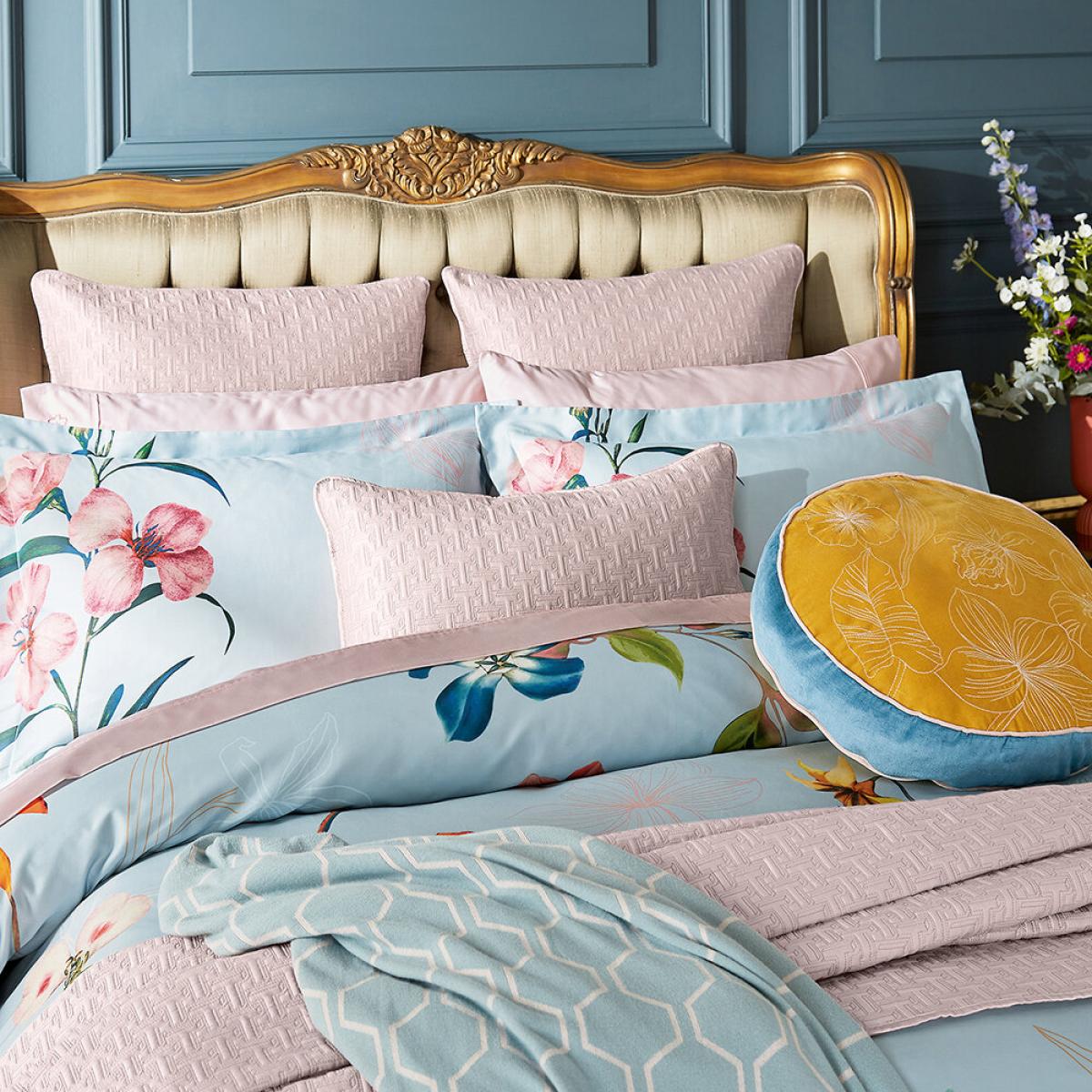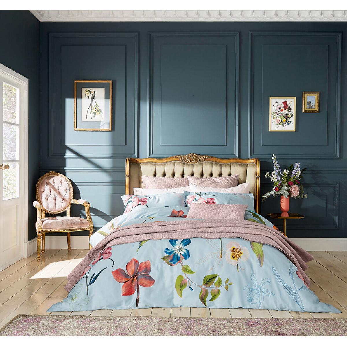 Add a charming finishing touch to your sleeping space with this New Hampton duvet cover from Ted Baker. Made from BCI cotton sateen with a luxurious 220 thread count, it is adorned with a beautiful floral design against a pale blue background. Style with the rest of the collection to complete the look.