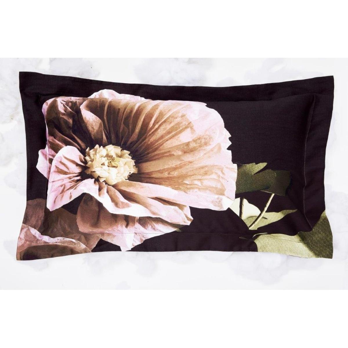 Make a striking statement in your bedroom with the Ted Baker Paper Floral Duvet Set in Black. Featuring oversized photographic blooms in lush shades of pink and green, this stunning print creates a bold yet sophisticated impact against its moody black background Professionally printed on a smooth 220 thread-count BCI cotton sateen, it feels soft and luxurious against the skin, offering comfort that matches its visual allure. The reverse side is in solid pink, giving you the flexibility to soften the look whenever you wish. Thread Count: 220 Composition: 100% BCI Cotton Percale Double, King and Superking Size Duvet Cover SET Includes Pair of Pillowcases Care Instructions Machine Washable Sizes Double Duvet Cover: 200cm x 200cm Kingsize Duvet Cover: 230cm x 220cm Super Kingsize Duvet Cover: 260cm x 220cm All screens vary in colour reproduction and whilst every effort has been made to display the colour as accurately as possible it is for guidance only