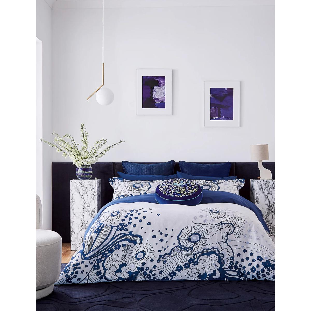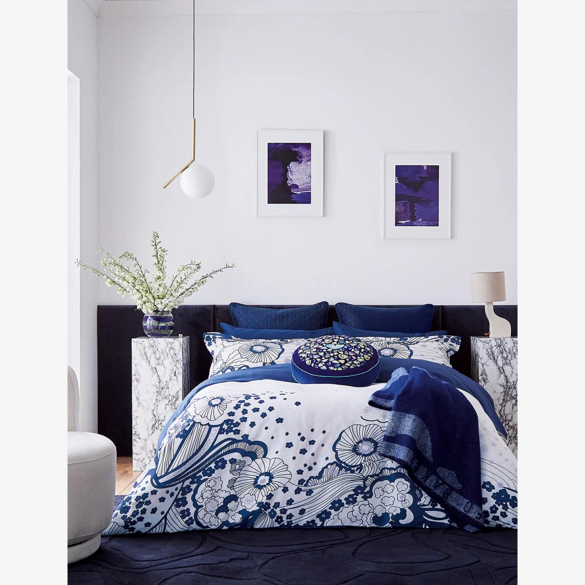 I love the Ted Baker duvet cover for its sophisticated navy palette and elegant floral swirls, which add a touch of visual interest without overwhelming the space. It works particularly well in contemporary or classic interiors where a calm, refined look is desired. Pair it with crisp white or grey bedlinen for a clean contrast, or incorporate textured cushions in similar navy tones for added depth. Practical styling tips include using lighter shades of cushions or throws to brighten the overall look, and opting for simple, modern bedside accessories to keep the focus on the duvet. Its sateen finish also brings a subtle sheen, giving your bedroom a polished feel - perfect for either a stylish upgrade or as everyday luxury.