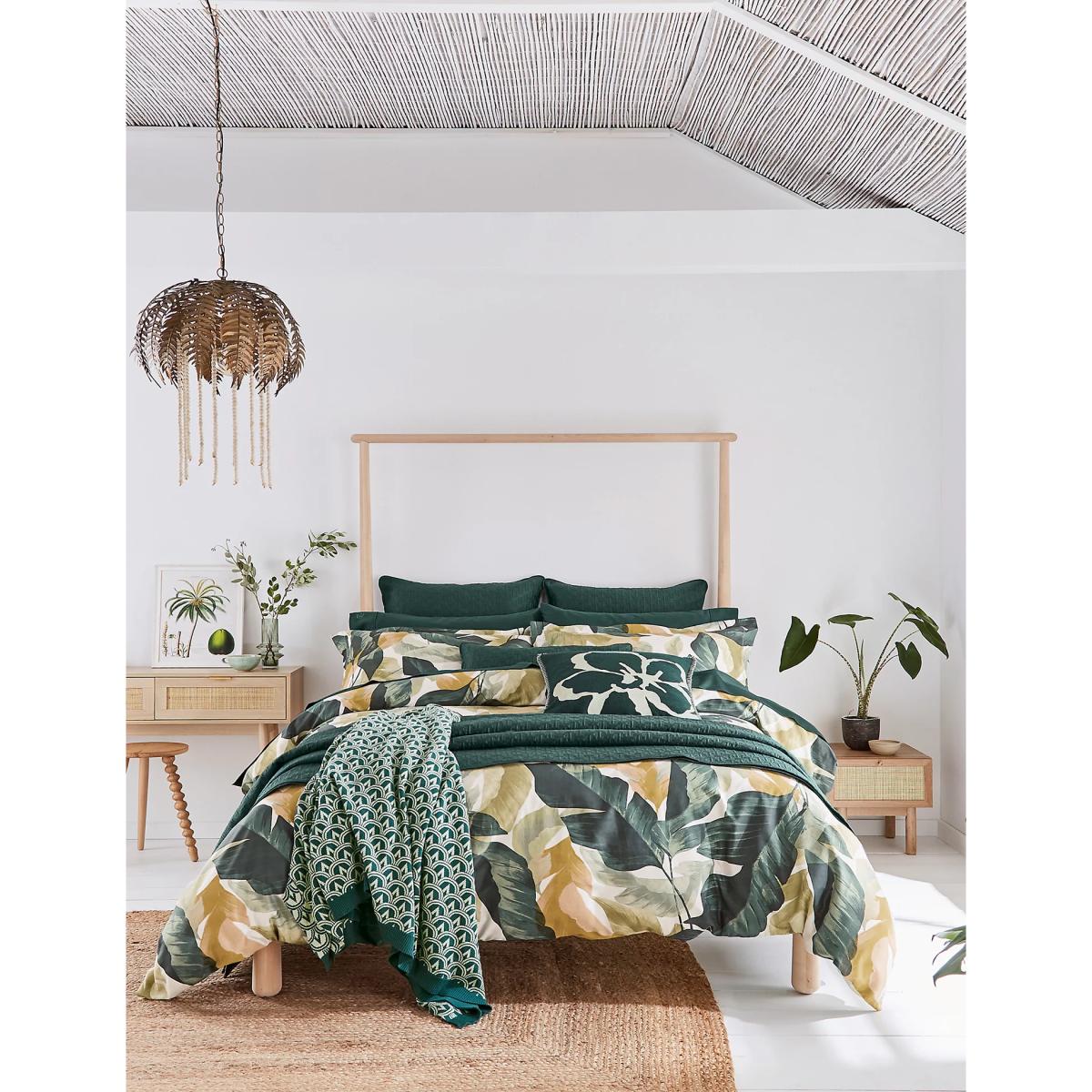 This duvet cover is a fantastic choice for adding a vibrant yet sophisticated touch to a bedroom. Its botanical print in lush greens and natural tones makes it versatile, working especially well in contemporary or Scandinavian-inspired interiors that favour natural textures and clean lines. The pure cotton sateen finish brings a subtle sheen and a soft, smooth feel, perfect for creating a luxurious yet practical layer. Styling tips include pairing it with solid-coloured bedding in deep green or neutral shades to let the print stand out, while adding textured cushions or throws in complementary hues lends a cosy, layered look. Its large size makes it ideal for rooms with higher beds or for those who prefer a more generous drape. Overall, it's a stylish and easy update that balances pattern with practicality.