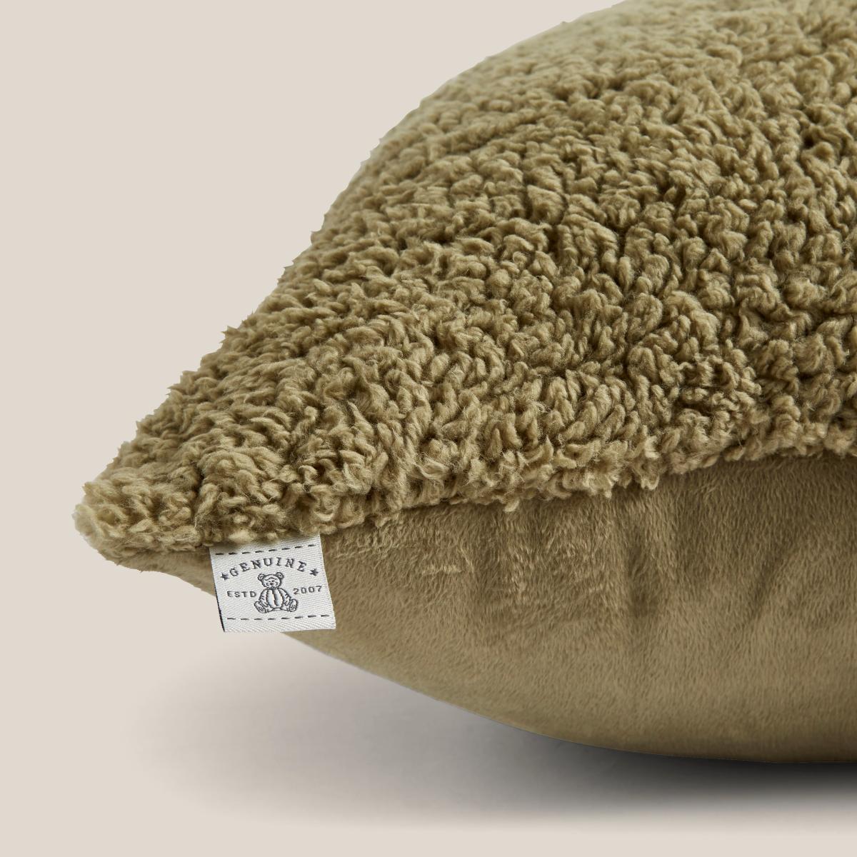 I love this olive green teddy bear cushion for adding texture and colour to a variety of interiors. Its cosy, plush finish makes it ideal for layering on sofa beds or armchairs, especially in casual or Scandinavian-inspired spaces. It works particularly well in neutral or earthy schemes, where its muted tone can serve as a subtle pop of colour or a grounding element. Practical styling tips include pairing it with other textured cushions or throws to create a welcoming, layered look. It's also great for introducing a touch of comfort to bedrooms or reading nooks, making it both functional and visually appealing.