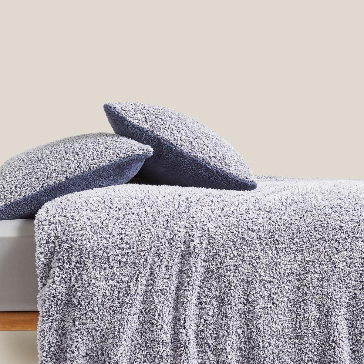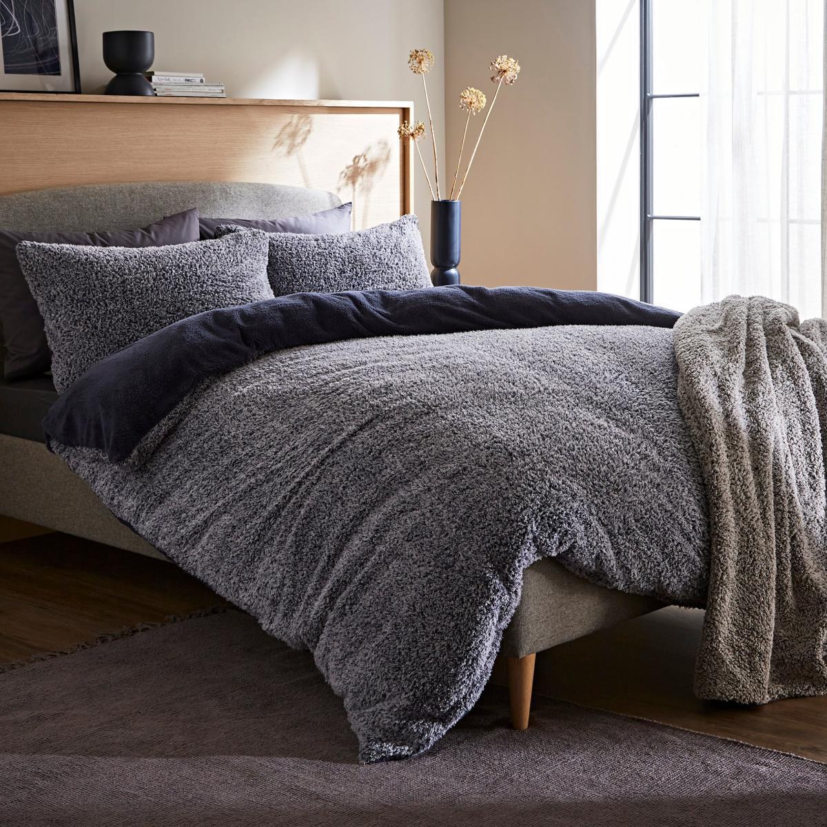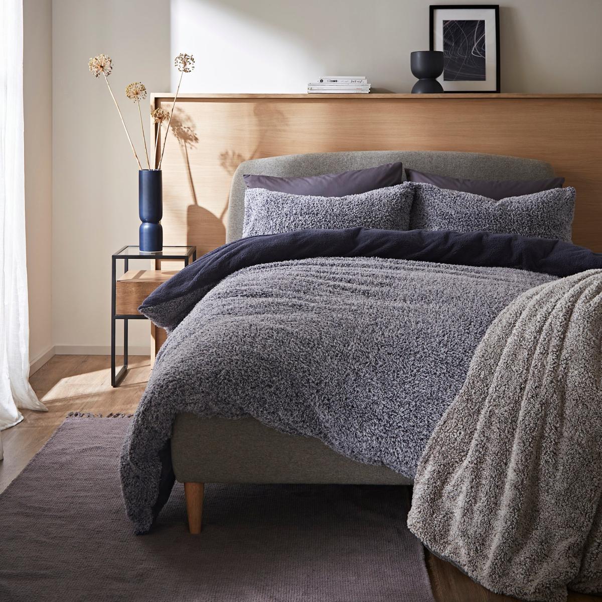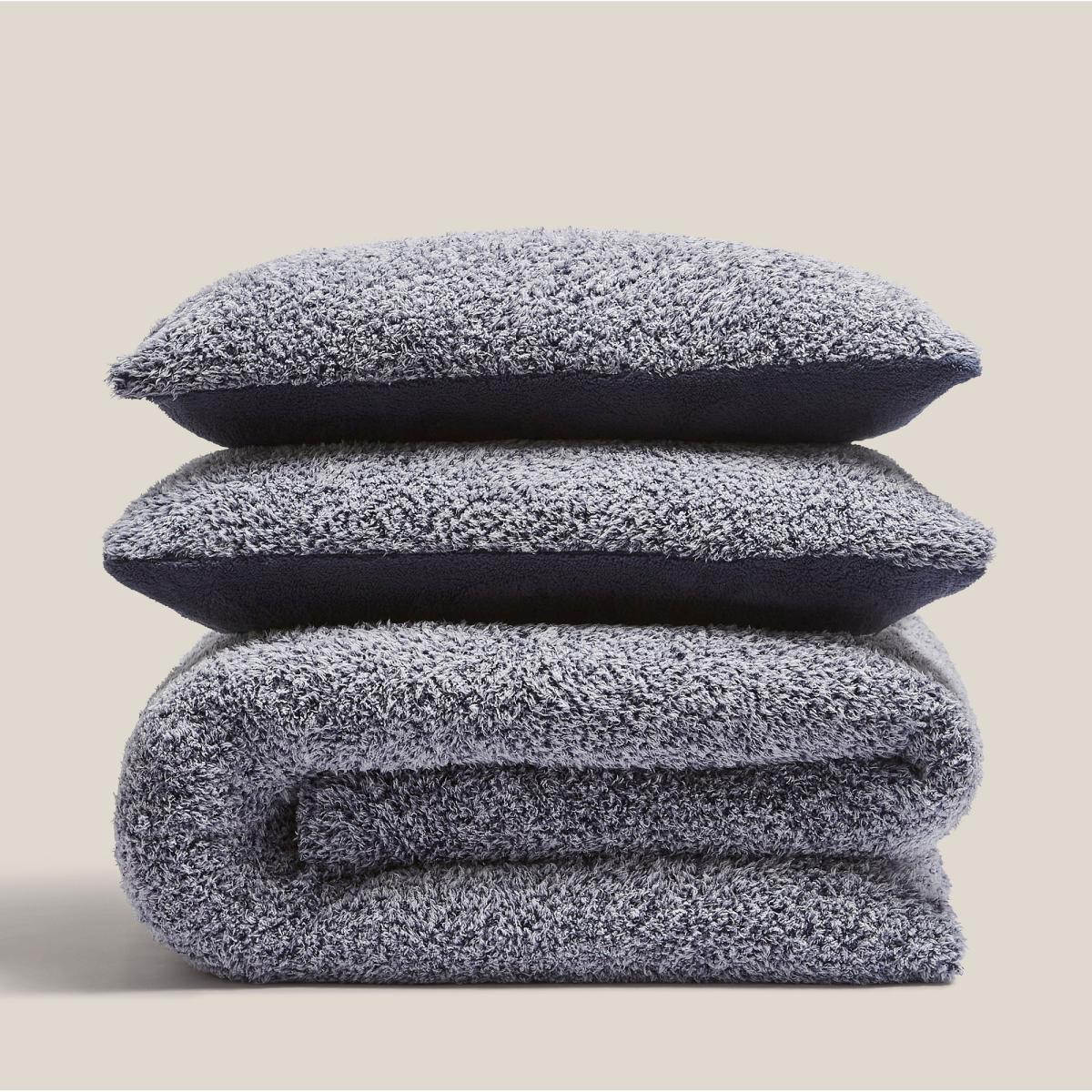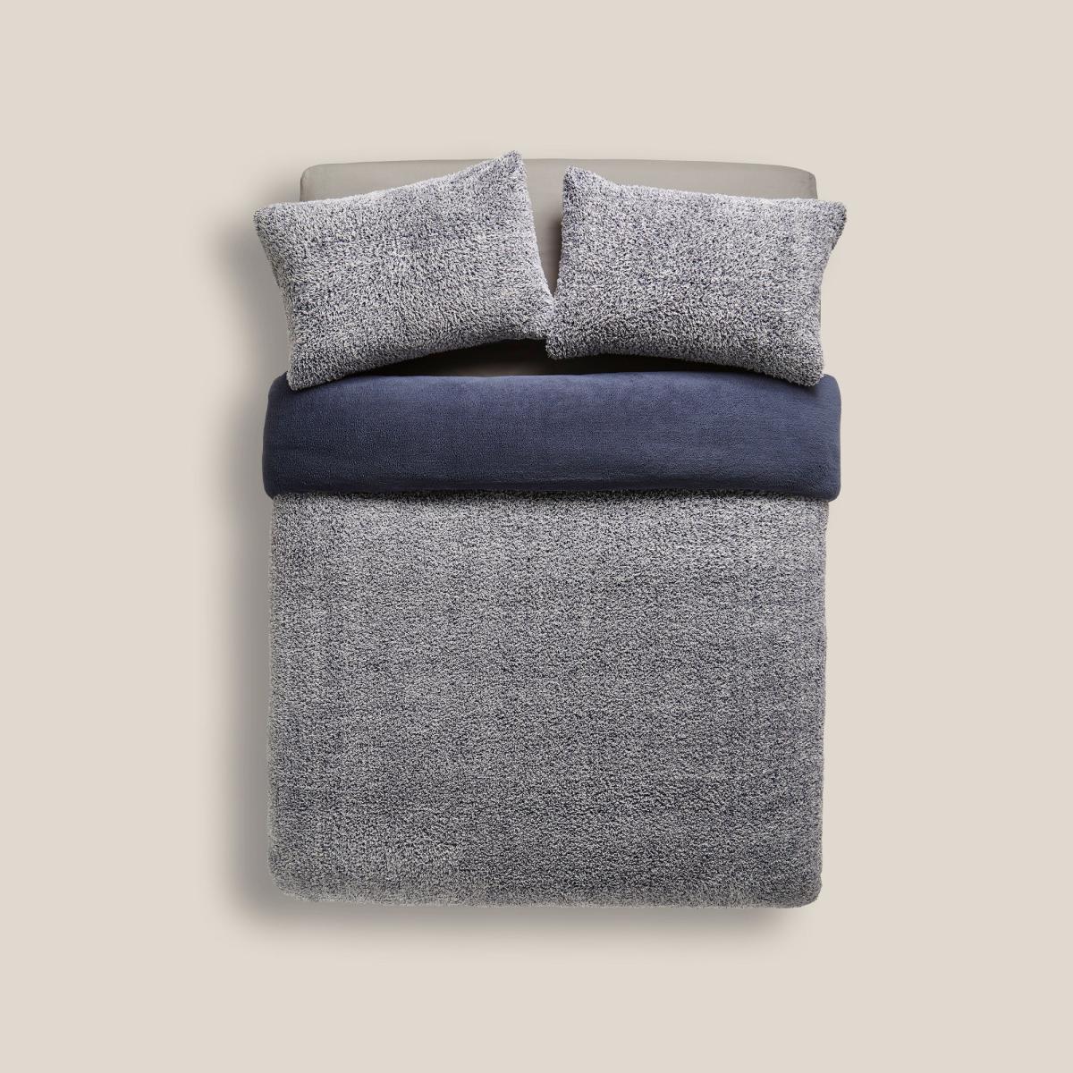 Teddy Bear Feather Soft Marl Reversible Duvet Cover and Pillowcase Set Navy Blue