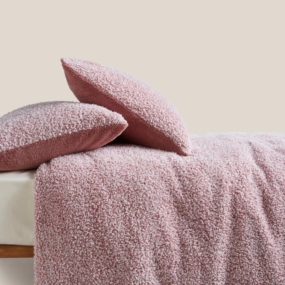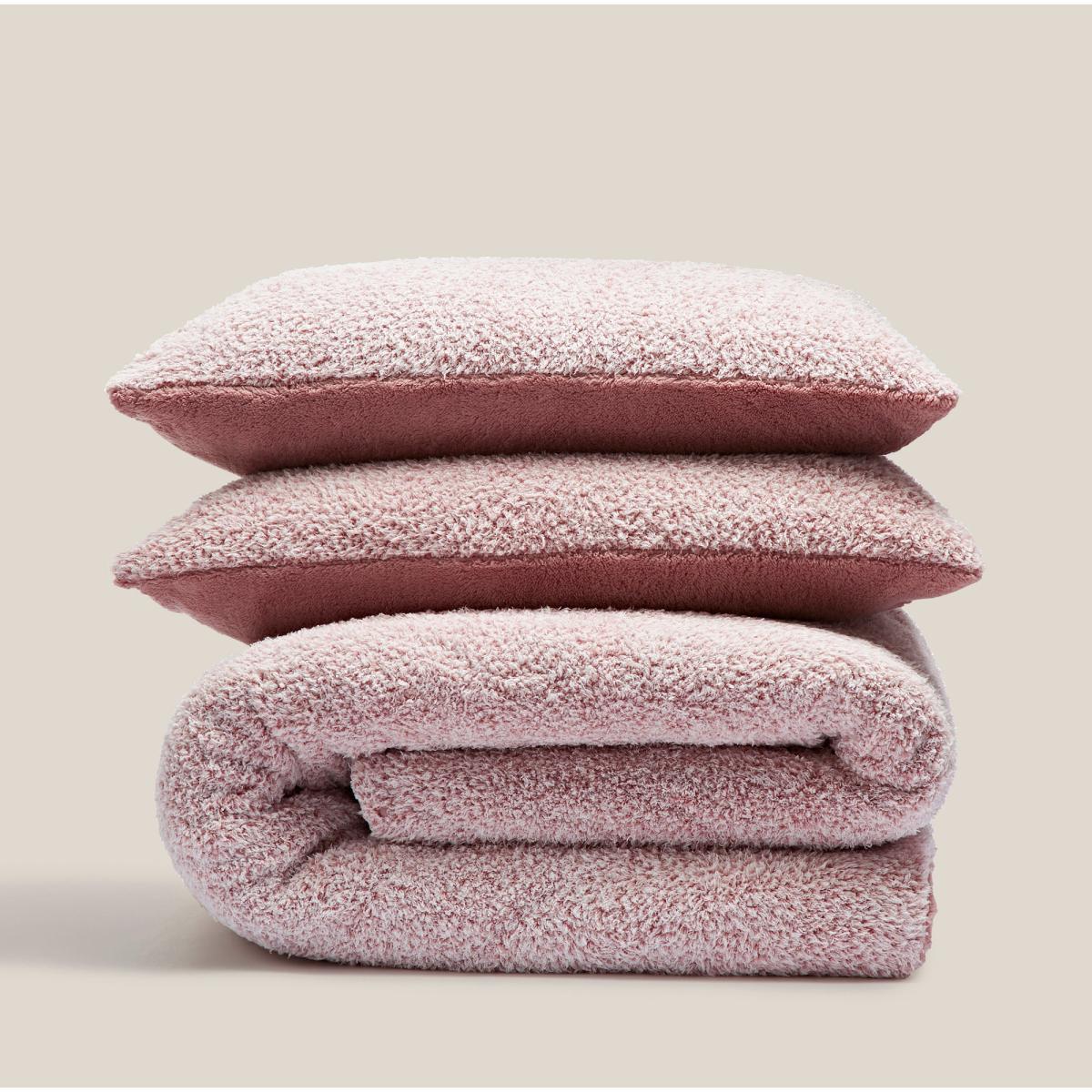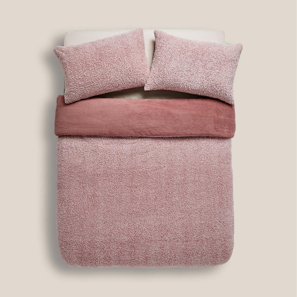 Teddy Bear Feather Soft Marl Reversible Duvet Cover and Pillowcase Set Pink