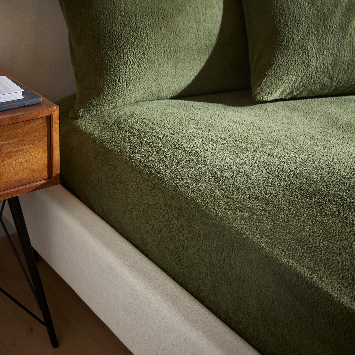I love this teddy bear fitted sheet in olive for adding a subtle touch of warmth and texture to the bedroom. Its muted green tone works well in both modern and classic interiors, especially when paired with neutral bedding and cosy throws. This sheet is versatile enough to complement Scandinavian-inspired minimalism or more eclectic, layered looks. A practical styling tip is to layer it with a coordinating or contrasting duvet cover for visual interest, and consider using the olive as an accent in other textiles or decor pieces to create a cohesive colour palette throughout the room. Overall, it’s a functional yet stylish choice that brings a hint of countryside charm to contemporary settings.
