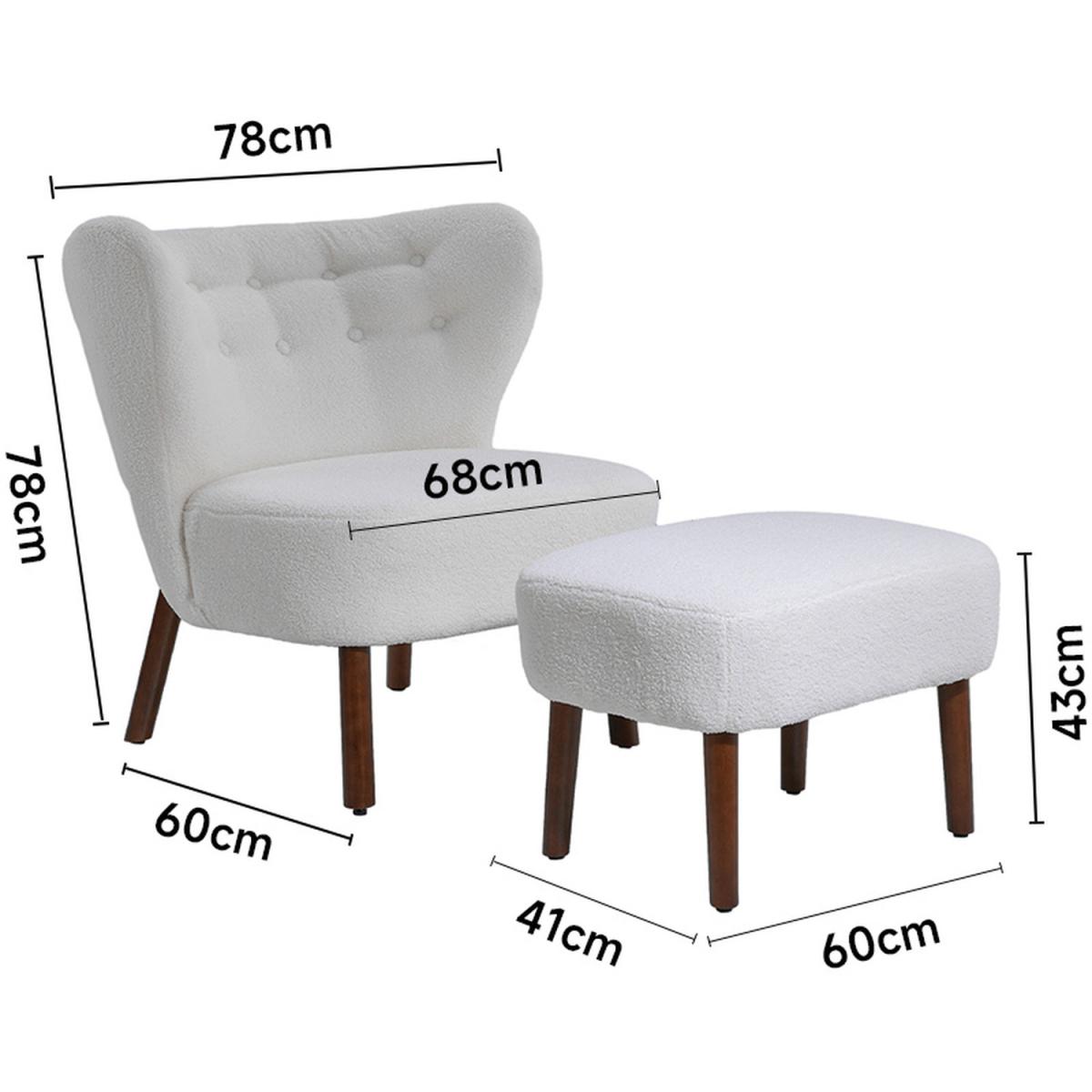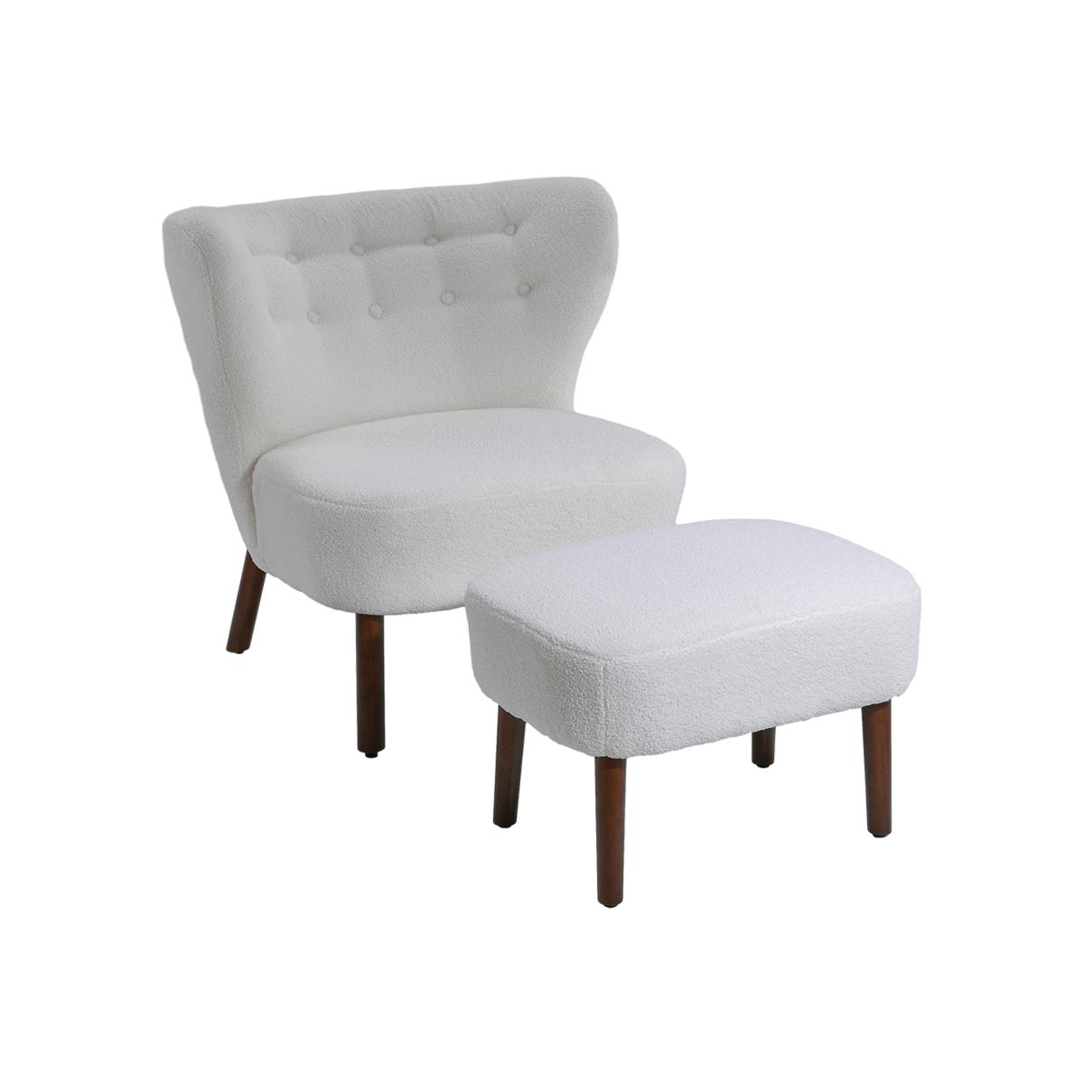 Teddy Bear Fur Tufted Accent Chair with Footstool - White