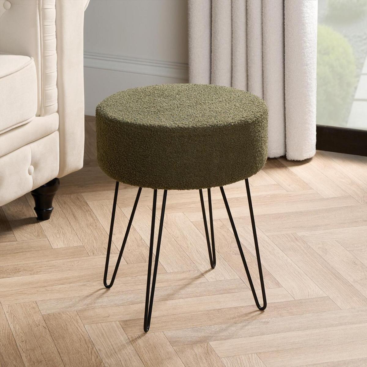 This teddy boucle hairpin stool can be used as a dressing table stool, side table and footrest. Add a modern and decorative touch to your bedroom, home office or living room. Assembly This item will be delivered in 5 parts, with screws to attach the 4 legs to the top.