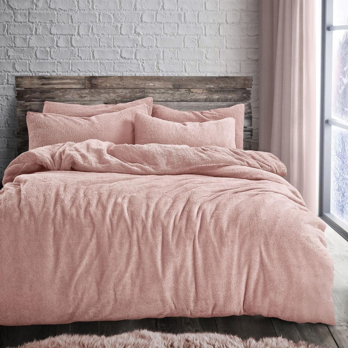 Teddy Deep Blush Pink Soft Cosy Thermal Fleece Duvet Set - Deep Blush Pink / King