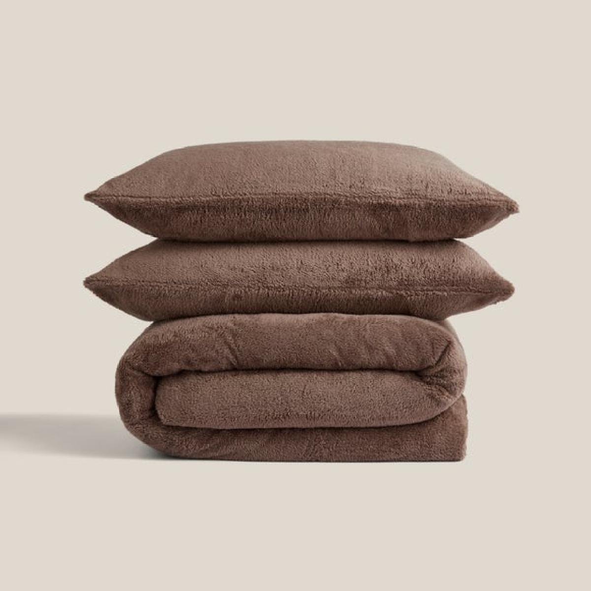 The Teddy duvet cover and pillowcase set is a versatile choice for adding cosy texture and warmth to a bedroom. Its neutral tones and tactile finish make it easy to incorporate into both contemporary and traditional interiors, especially those with a relaxed, inviting vibe. Styling tip: pair it with layered throws and cushions in complementary shades to create a layered, cosy look, or keep it simple for a minimalist approach. It works particularly well in bedrooms with soft, earthy colour schemes, and the plush texture provides both visual interest and comfort. This set is also practical-its rich fabric lends itself well to snuggling into during colder months, making it a smart choice for creating a snug retreat.
