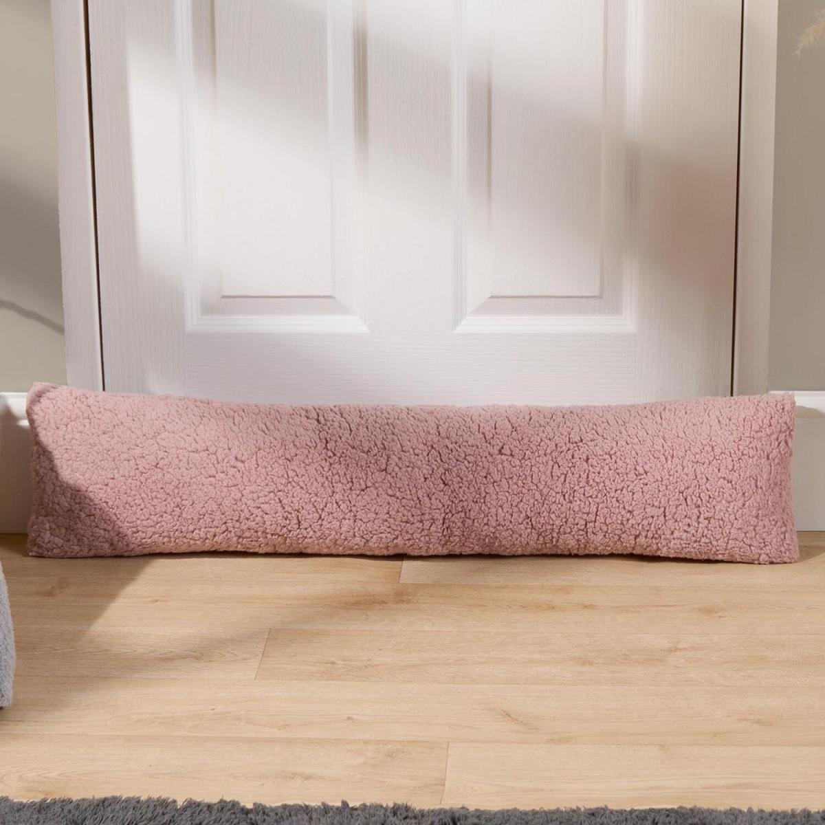 Teddy Fleece Door Draught Excluder Draft Insulator - Blush Pink