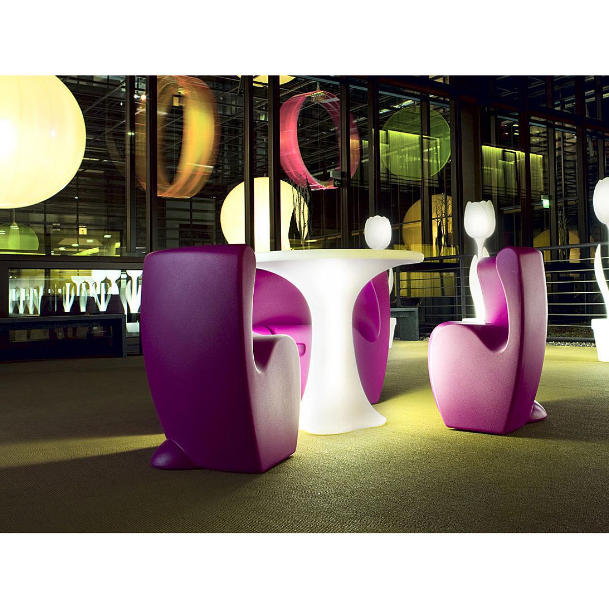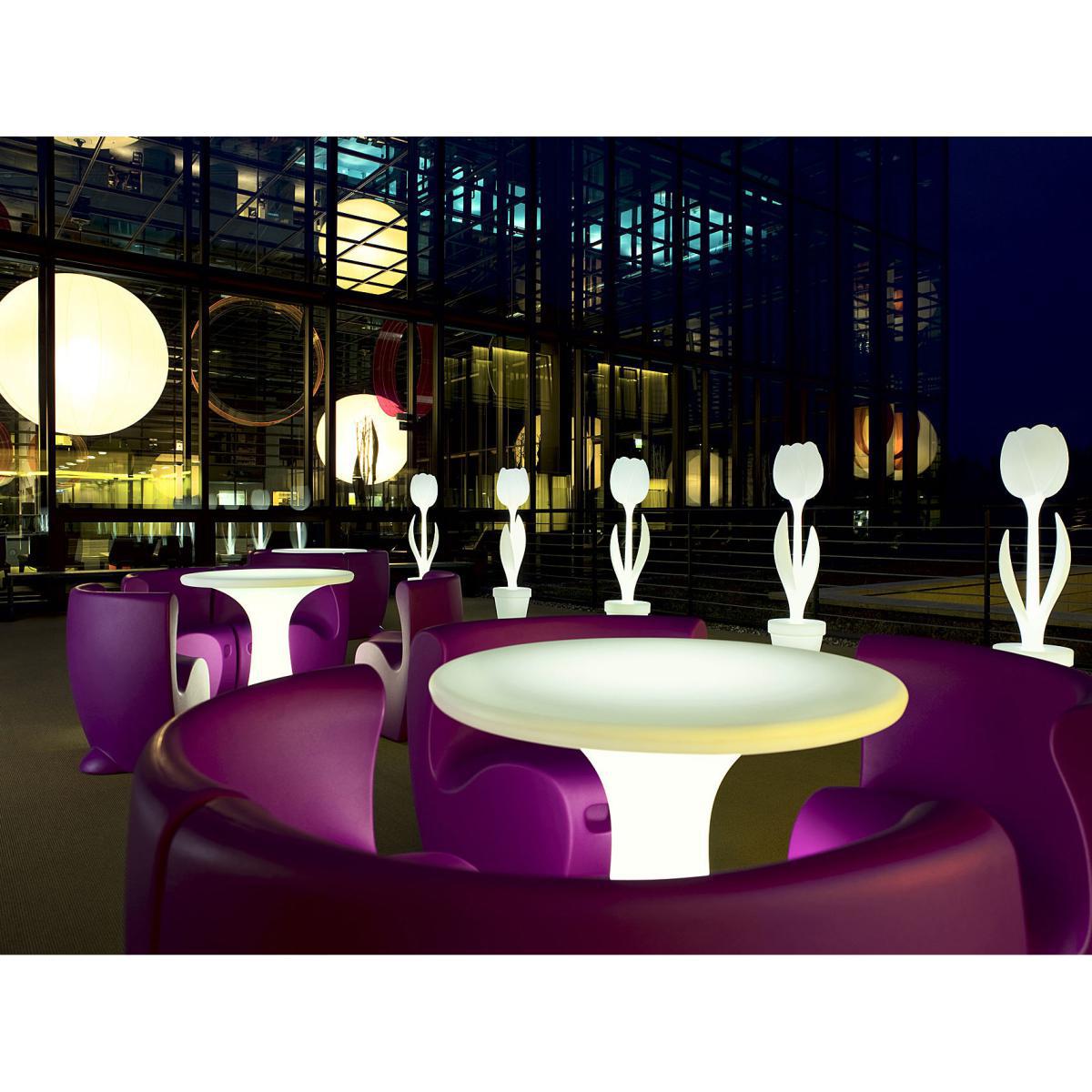 With the luminous Teddy table, you can create an exceptional, ultra-contemporary lounge atmosphere on your terrace or in your living room. The refined, translucent shape gives off a soft and sensual light halo that will illuminate your meals, your aperitifs. An invitation to extend the intimacy of the evening through till the end of the night! The Teddy table (Ø 79 cm x H 72 cm) also stands out for its solid base with its strangely organic forms. Made of polyethylene, the Teddy is perfectly suited for outdoor use: it has nothing to fear from rain or UV. It goes perfectly with the Miss Petra chairs: surprisingly complementary shapes.