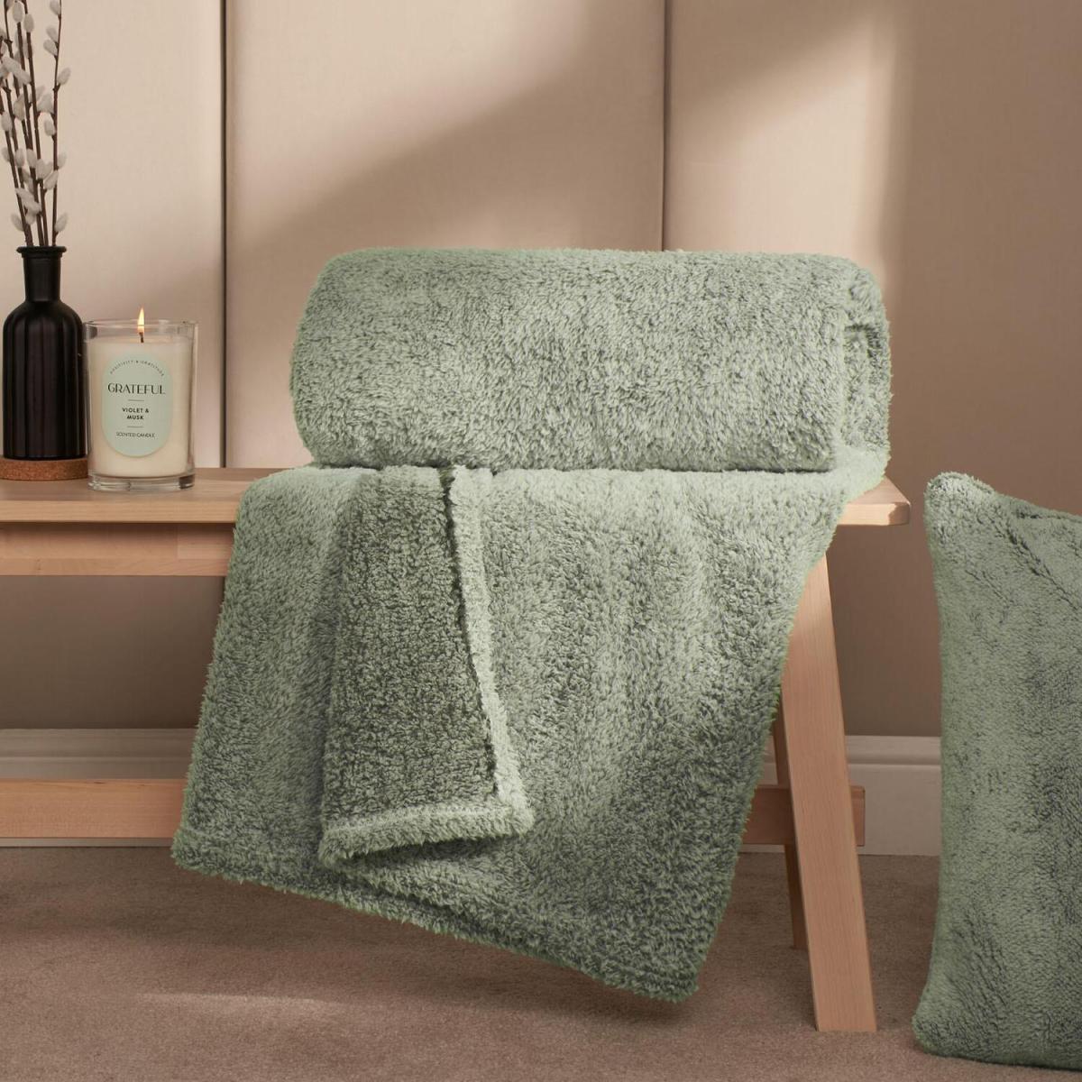Teddy Marl Fleece Blanket Throw - Forest Green / 150cm