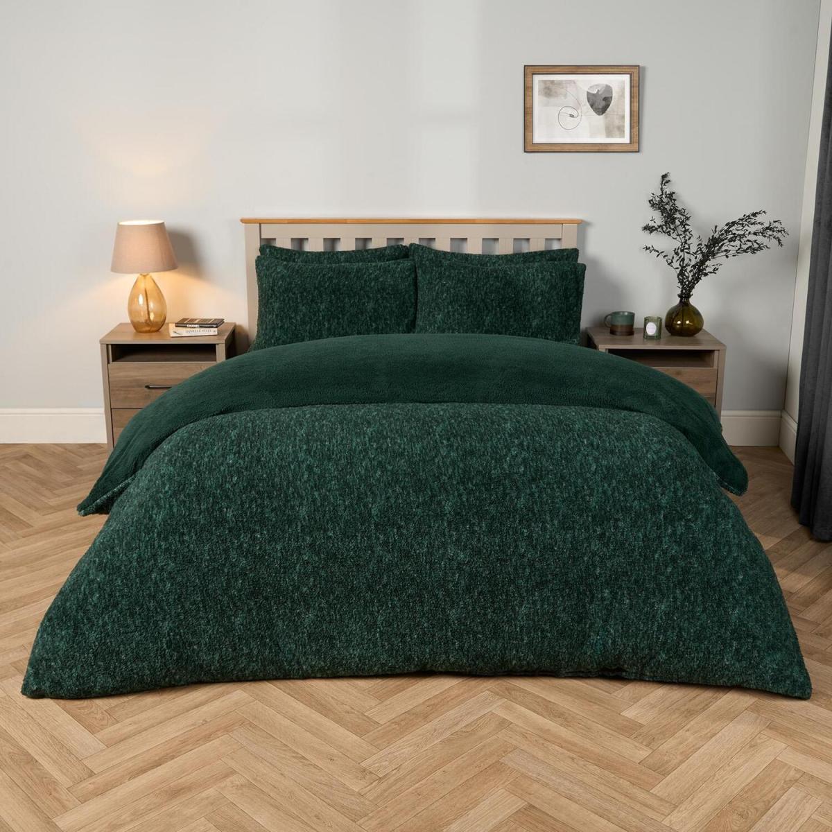 Teddy Marl Fleece Duvet Set - Forest Green / King