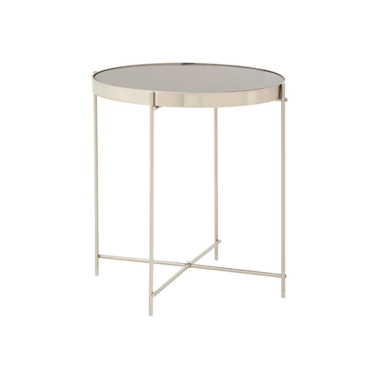 Teddy's Collection Axel Grey Mirror Brushed Nickel Side Table / Small