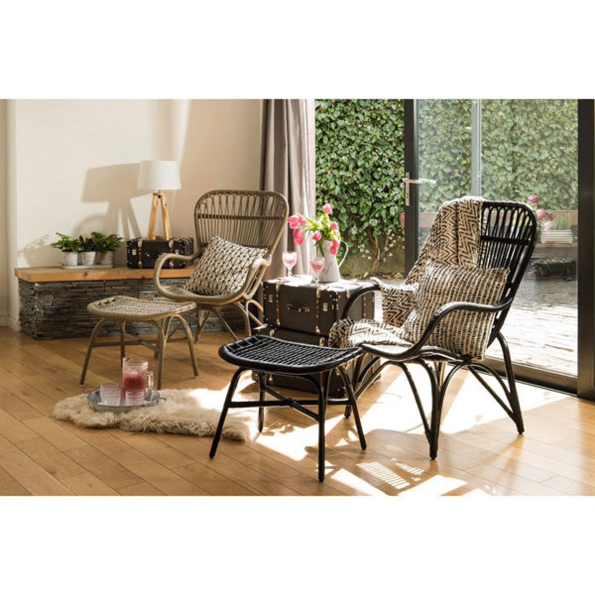 With its golden wood base and natural shade the Brett table lamp adds a natural touch to the living room.