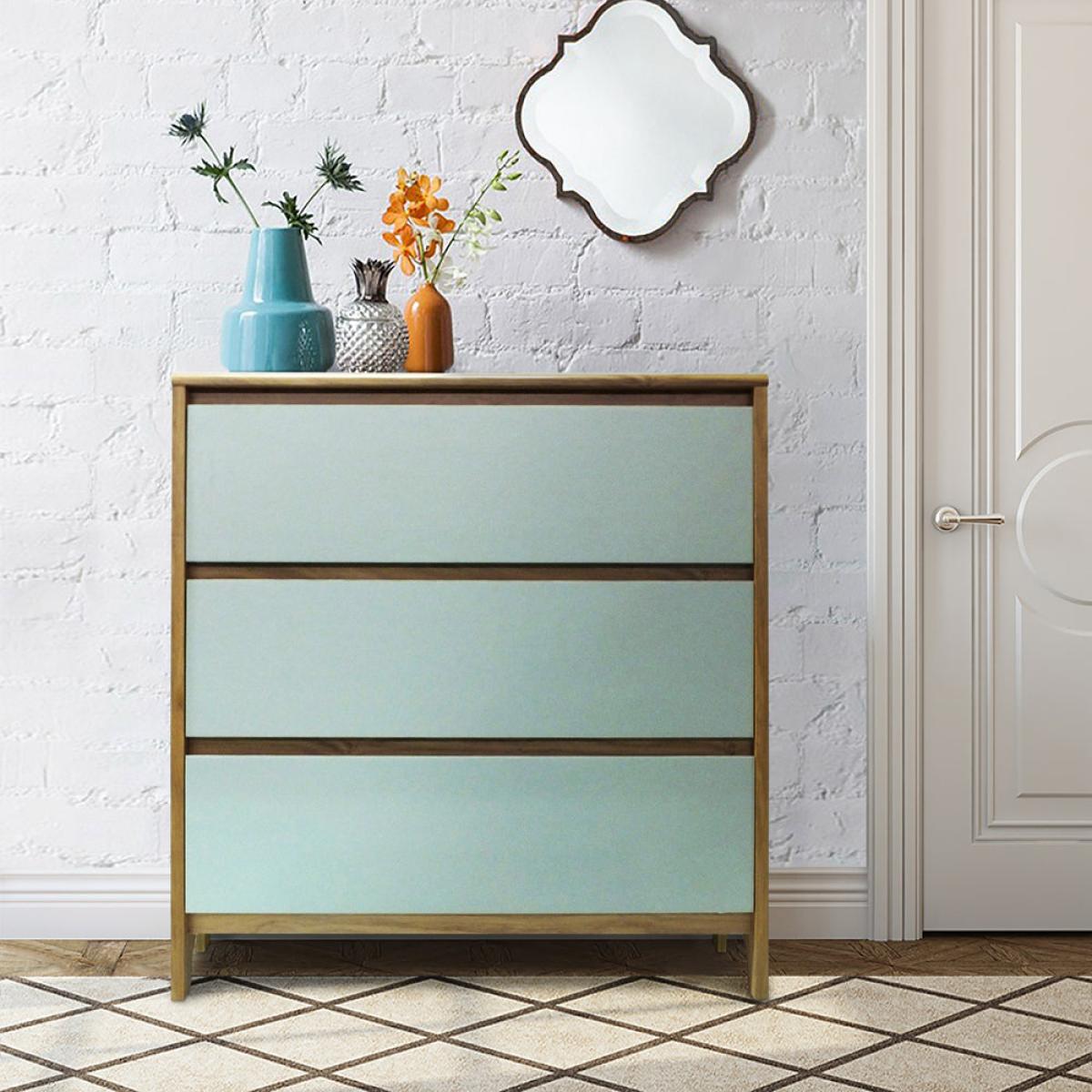 I really like this dresser - the combination of grey and oak makes it versatile and in tune with contemporary and Scandi-inspired interiors. It works well in bedrooms that lean towards minimalist or modern aesthetics, but its neutral tones can also soften more eclectic or rustic spaces. Practical styling tips include using the top surface for a few decorative items like plants or reading lamps, while the drawers are perfect for storing essentials out of sight, keeping the space tidy. Its clean lines and colour pairing make it a flexible piece that can tie together different colour schemes and design styles, making it a smart choice for everyday practicality and subtle elegance.