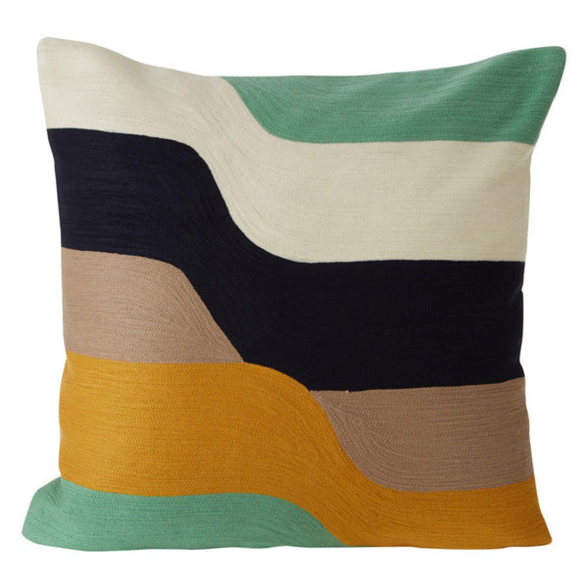 Blythe Ozella Wavy Stripe Embroidered Multicolour Cushion.