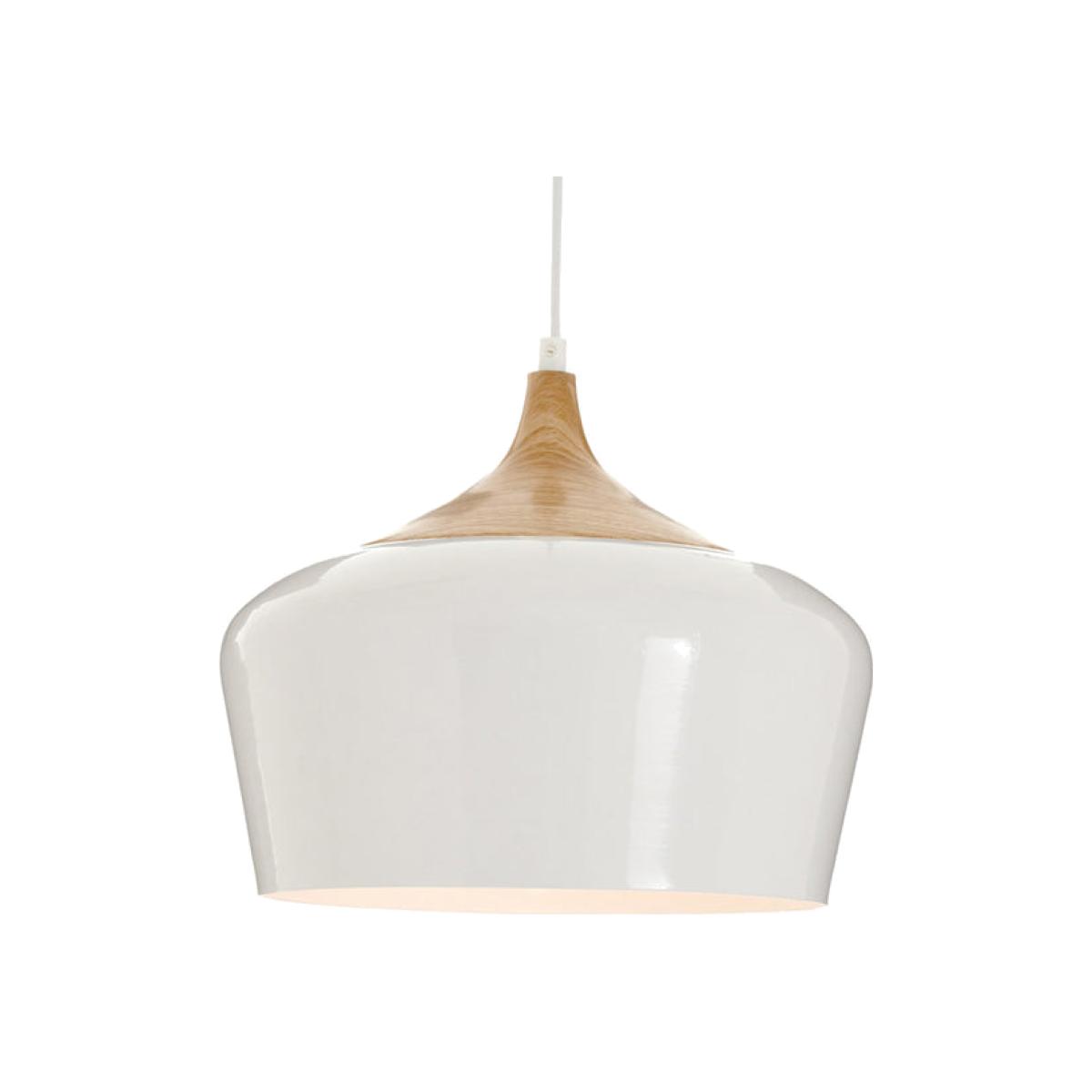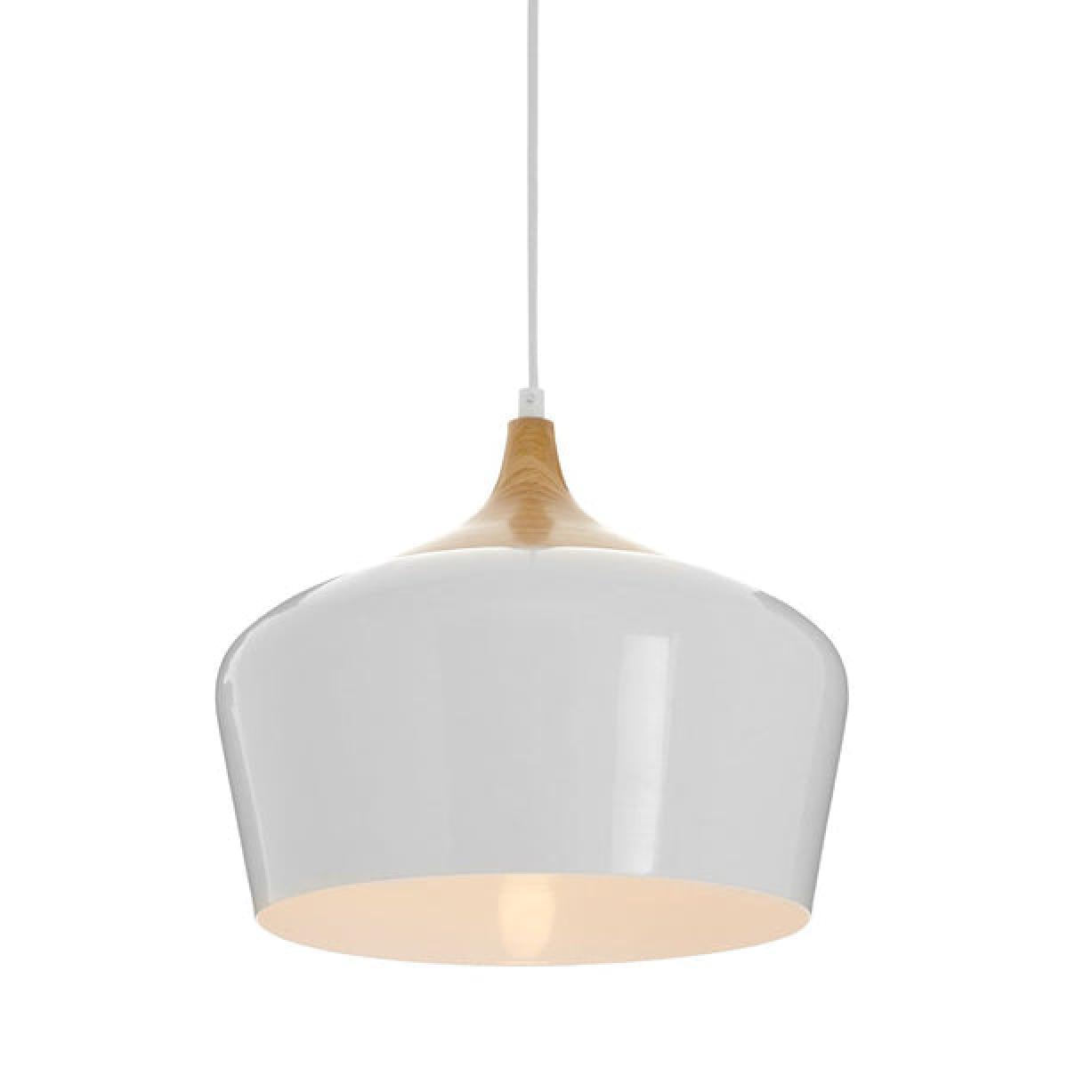 I love this pendant light for its clean, contemporary look that lends itself well to a variety of interiors. The combination of natural wood and sleek white creates a versatile aesthetic, making it ideal for modern, minimalist, or Scandinavian-style spaces. It works particularly well in kitchens or dining areas where you want to introduce a subtle, warm focal point. Practical styling tips include hanging it at a height that provides adequate task lighting while maintaining clear sightlines, and pairing it with matte or textured finishes nearby to add visual interest without overpowering, ensuring it remains a understated yet stylish feature in your room.