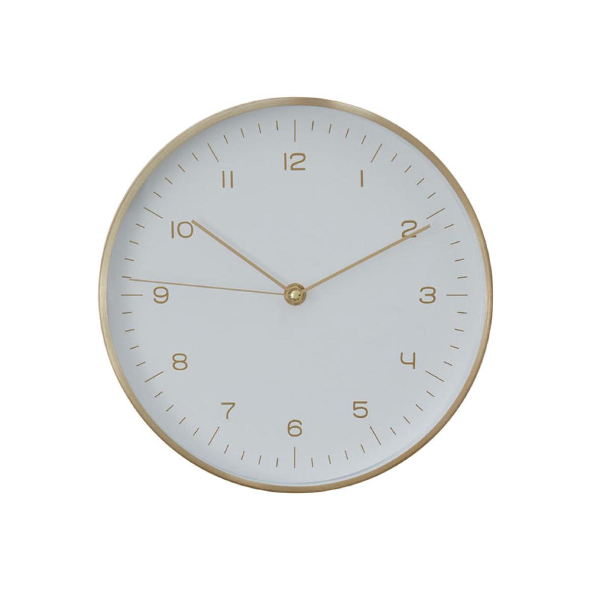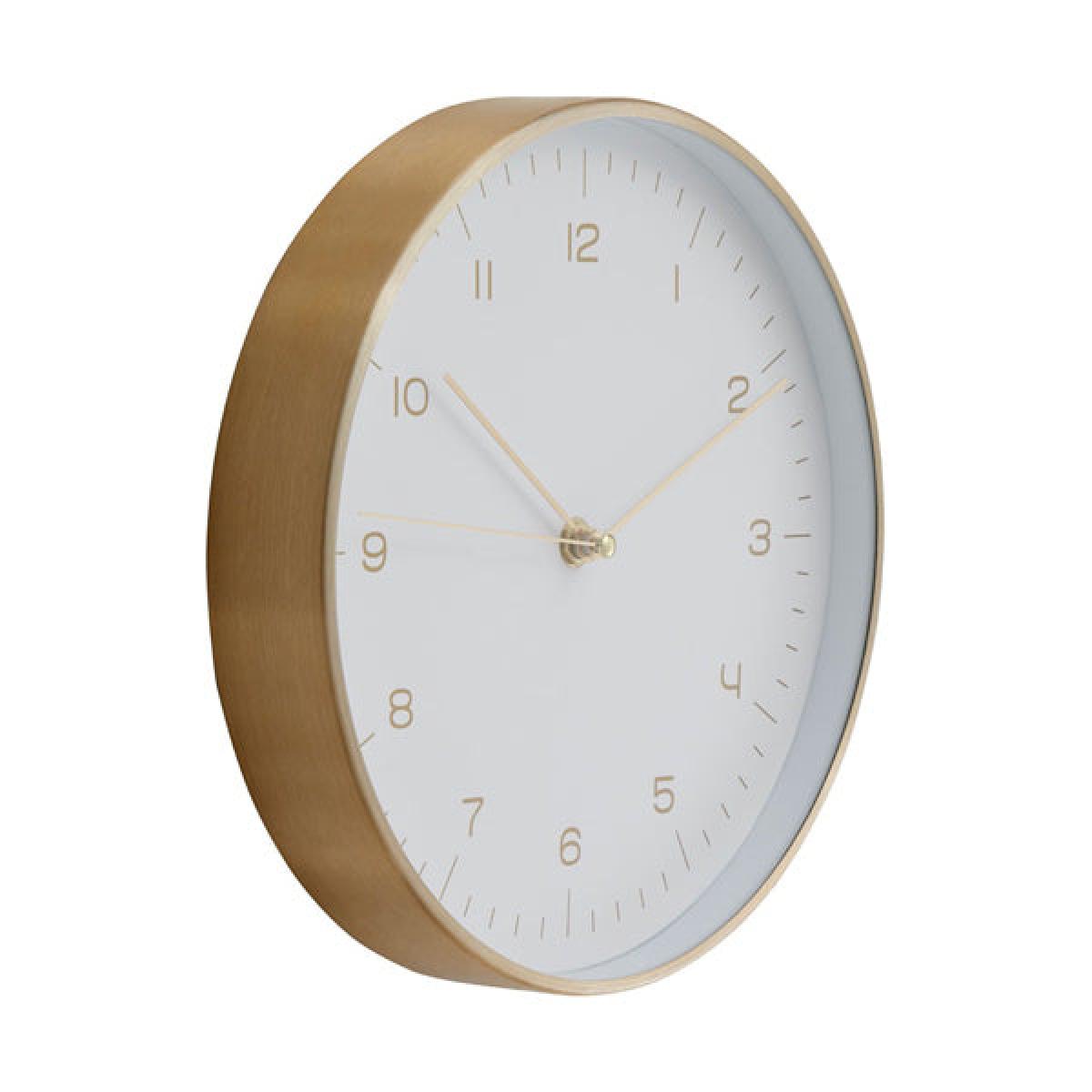 The Carter gold and white finish wall clock is a luxe statement piece combining warm metallic and minimal accents.