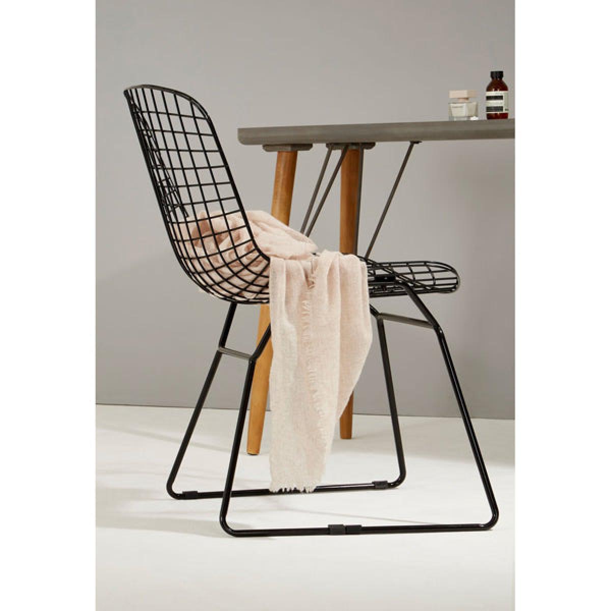 I love this wire dining chair for its sleek, minimalist design that pairs effortlessly with both modern and industrial interiors. Its black finish makes it super versatile, working well in monochrome schemes or as a contrasting accent in colourful spaces. The curved wire structure offers a light, airy feel, making it ideal for smaller dining areas or open-plan kitchens. For practical styling, consider adding cushioned seat pads or throws for extra comfort and visual interest. It looks especially effective paired with a smooth wooden table or a glossy surface to balance the metal's cool, contemporary vibe.