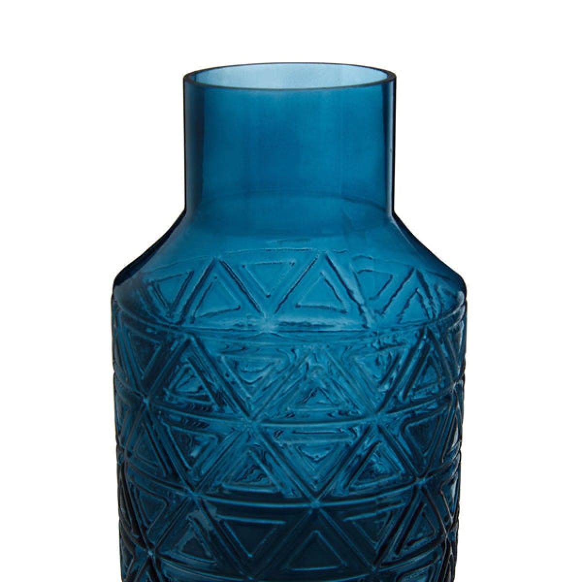 I love this blue vase because of its bold colour and textured geometric pattern, which adds visual interest without overwhelming a space. It works particularly well in contemporary and modern interiors, as well as eclectic settings looking for a pop of colour. For styling tips, consider pairing it with neutral or monochromatic colour schemes to let the vase really stand out, or group it with other glassware or ceramics in similar tones for a curated look. It’s versatile enough to be a standalone statement piece on a console table or shelf, or used to display fresh or dried flowers for added colour and texture. Its sturdy form makes it great for both decorative purposes and practical use.