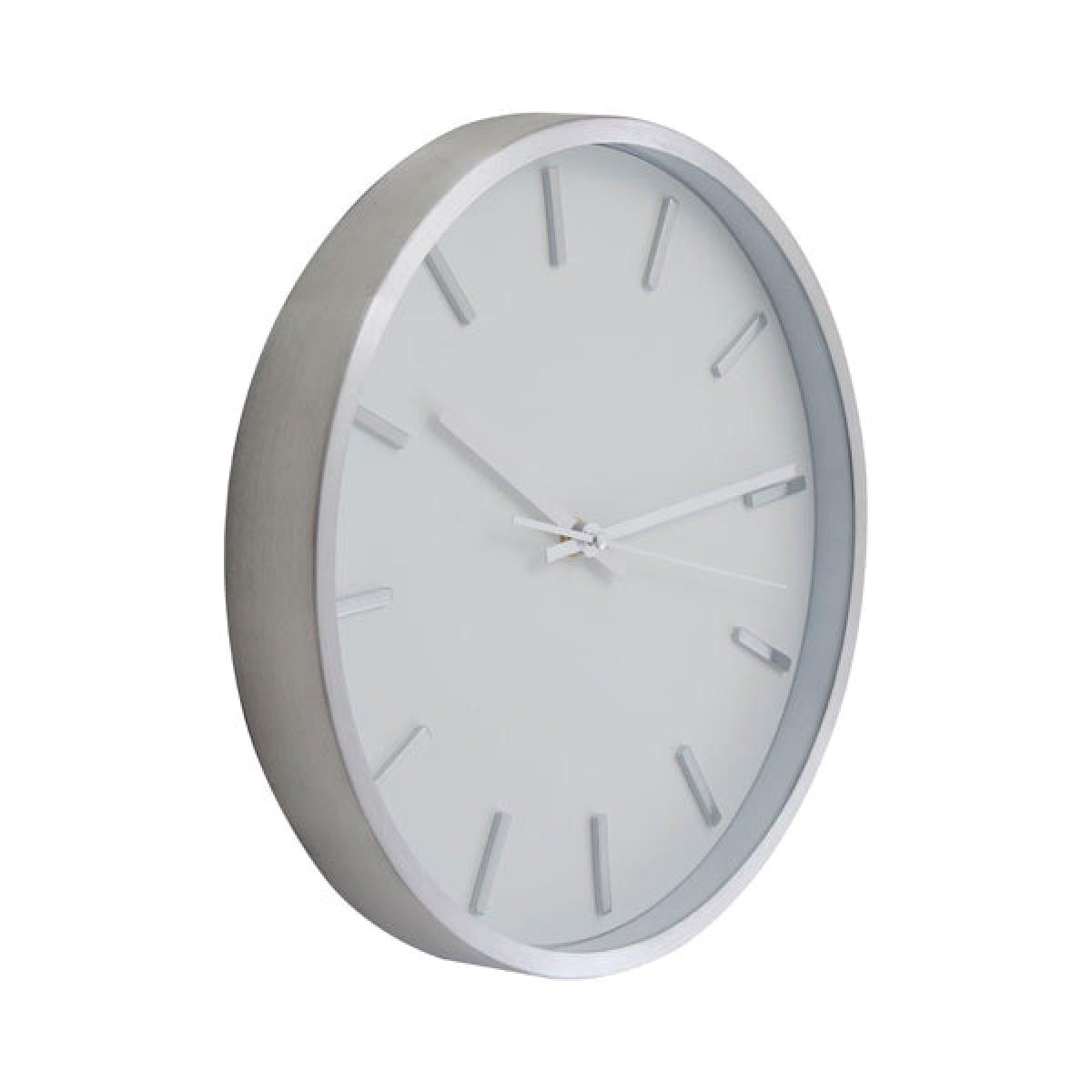 I really like this clock for its clean, modern look and subtle sophistication. The Earl Silver Wall Clock works particularly well in contemporary or minimalist interiors, providing a sleek focal point without overpowering the space. It’s a practical piece that suits living rooms, kitchens, or even home offices, where both style and function are key. When styling, consider pairing it with neutral tones or metallic accents to enhance its understated elegance, and ensure it's hung at eye level for easy readability. Its large size makes a statement, so keep surrounding decor simple to let it really stand out.