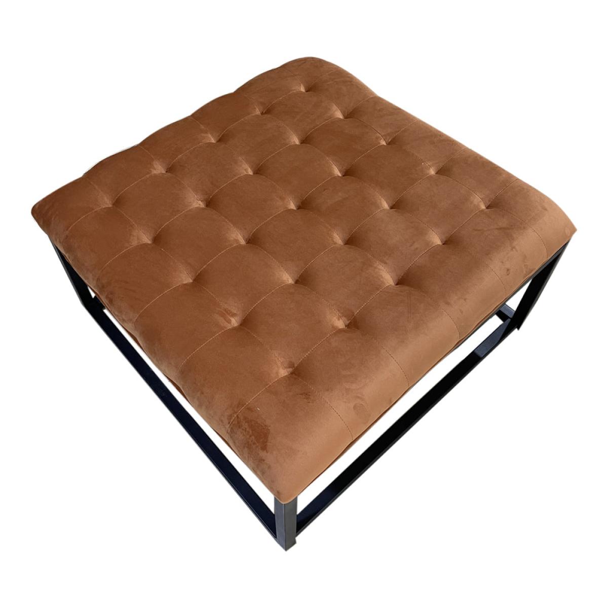 The perfect way to add a touch of luxury and class to any interior space, the Teddy's Collection Falun footstool in burnt orange is sure to delight. This sophisticated footstool enables you to put your feet up in comfort and style whilst making a striking impression with its crisp steel frame and fashionable rich tone of burnt orange. The use of opulent velvet fabric and an elegant flocked finish ensures this footstool is a truly timeless piece to treasure; what's more, its generous proportions mean it can be put to use as additional seating, making it as versatile as it is alluring.