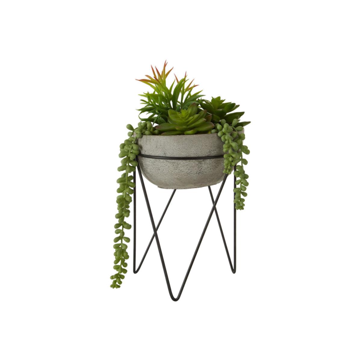 Teddy's Collection Farrah Mixed Succulent Pot Stand Grey