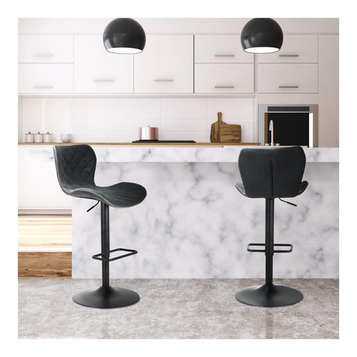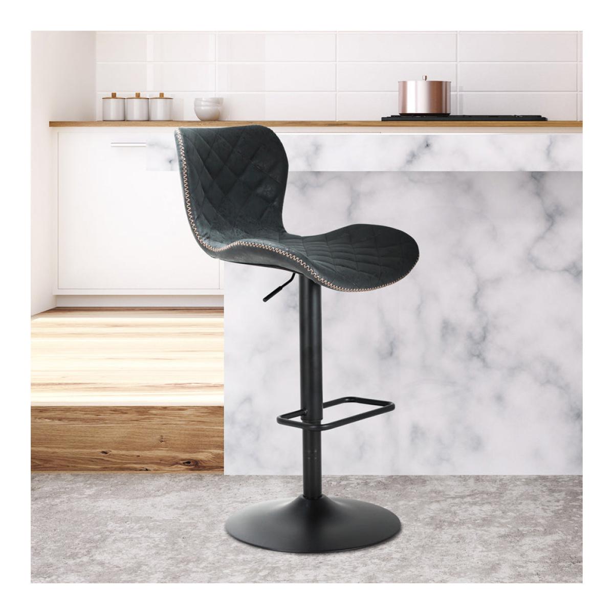 This striking bar chair stands out with its soft leather-like upholstery, and intricate detailed stitching. Its adjustable height and full swivel features allow for this chair to stand tall as the centre piece of any kitchen, complimenting an array of kitchen styles and themes.