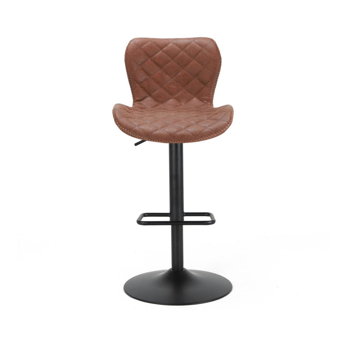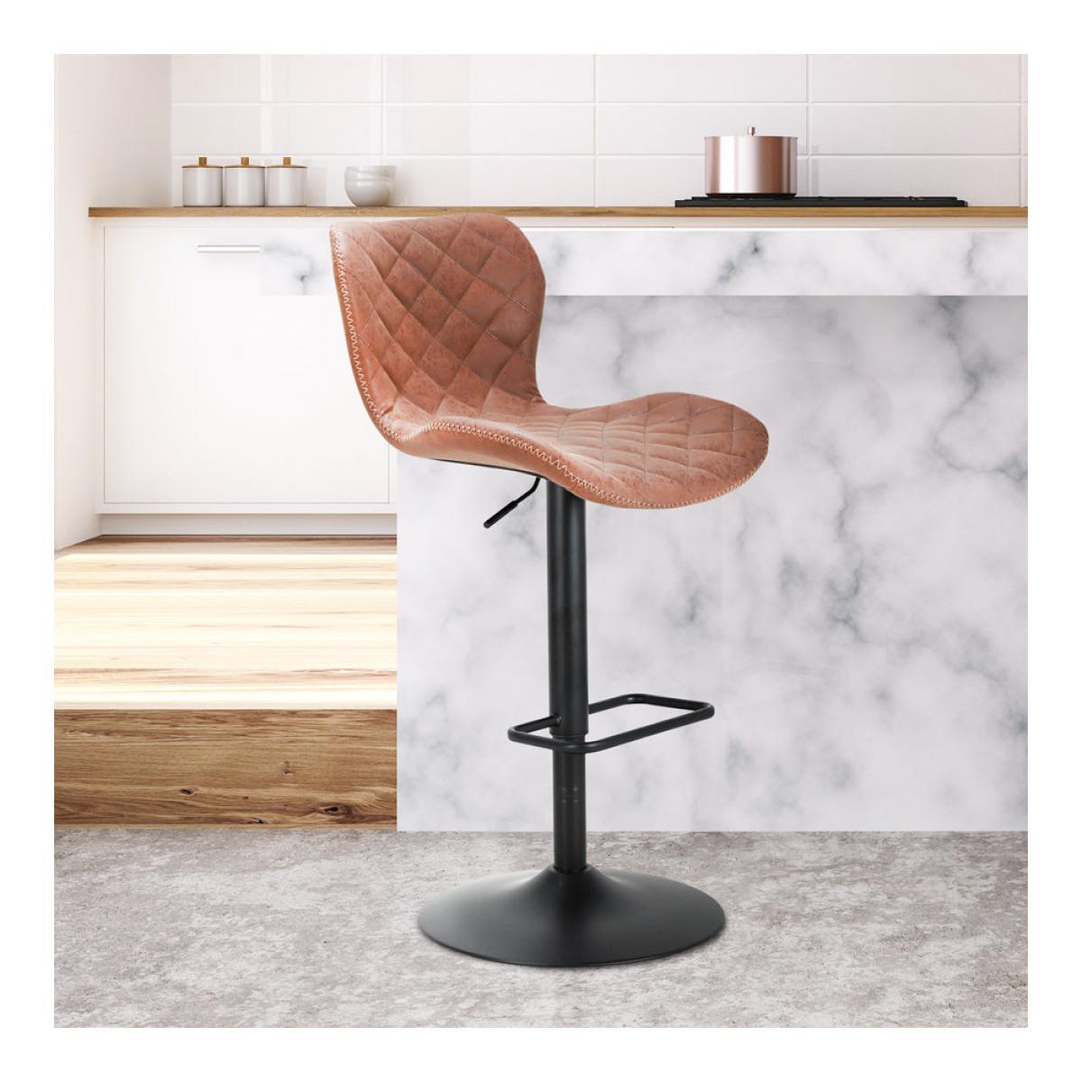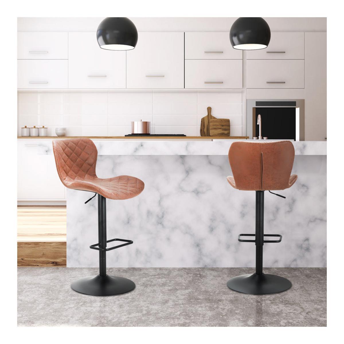 This striking bar chair stands out with its soft leather-like upholstery, and intricate detailed stitching. Its adjustable height and full swivel features allow for this chair to stand tall as the centre piece of any kitchen, complimenting an array of kitchen styles and themes.