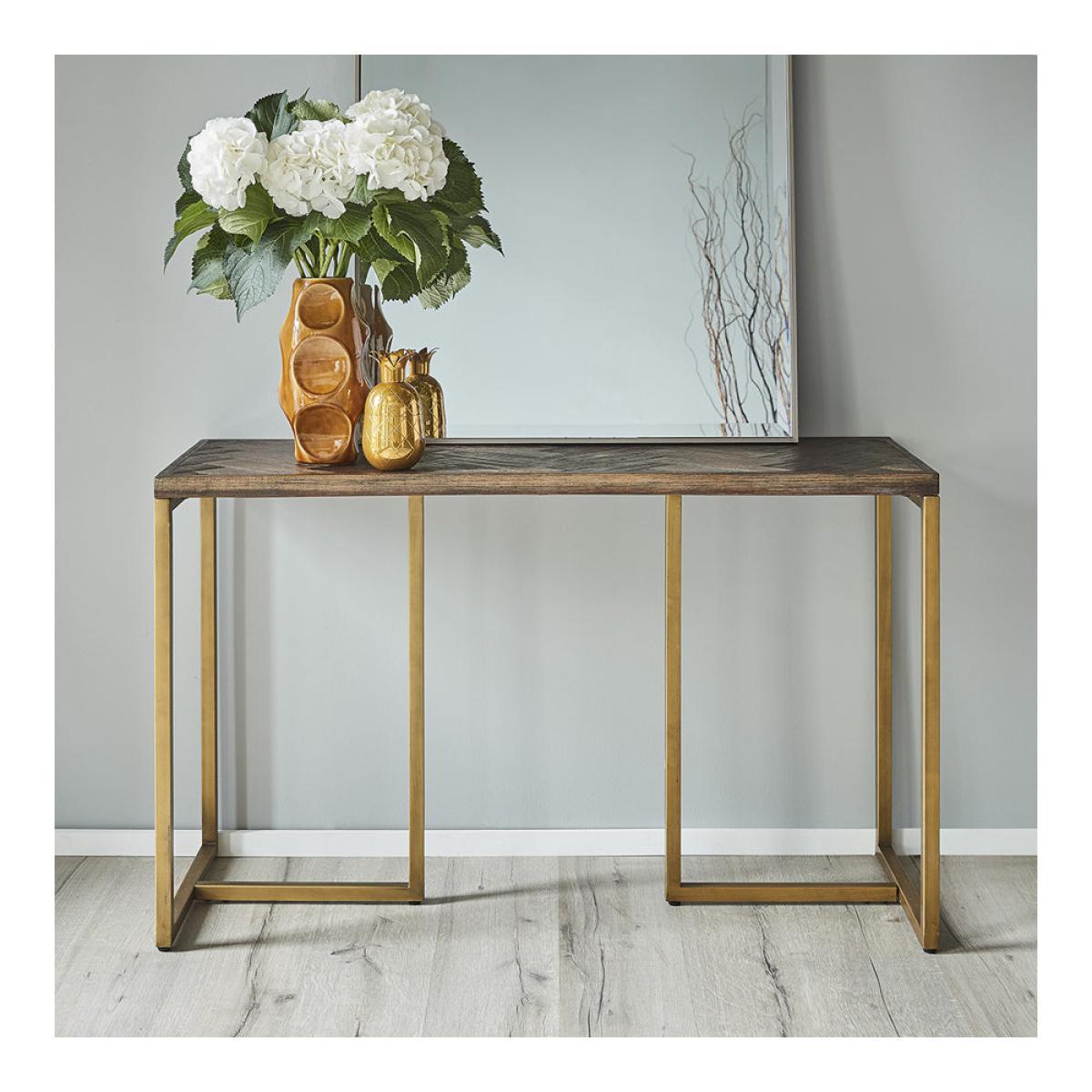 This lovely, versatile and classy Teddy Beau Fino console table is simply stunning and can be placed in various locations in your home to add depth, warmth and character. Pair with your favourite, lamp, ornament, or plant to cleverly transform your house into a home. Place in your hallway and wow your guests as they enter, or use in a more practical location to make a striking statement in your lounge. The Teddy Beau Fino exudes character and design with gorgeous, angled, brass legs and a lovely, detailed herringbone table top. Product dimensions are H: 75 x W: 110 x D: 35cm.