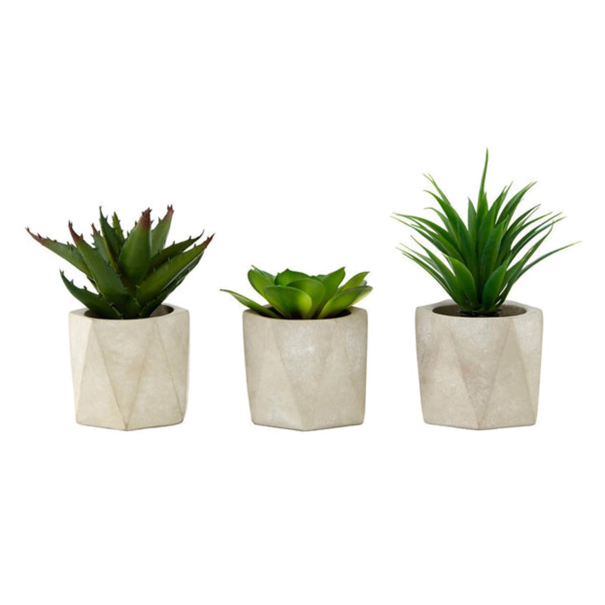 Each of these Fiori faux succulents is displayed in an on-trend geometric pot.