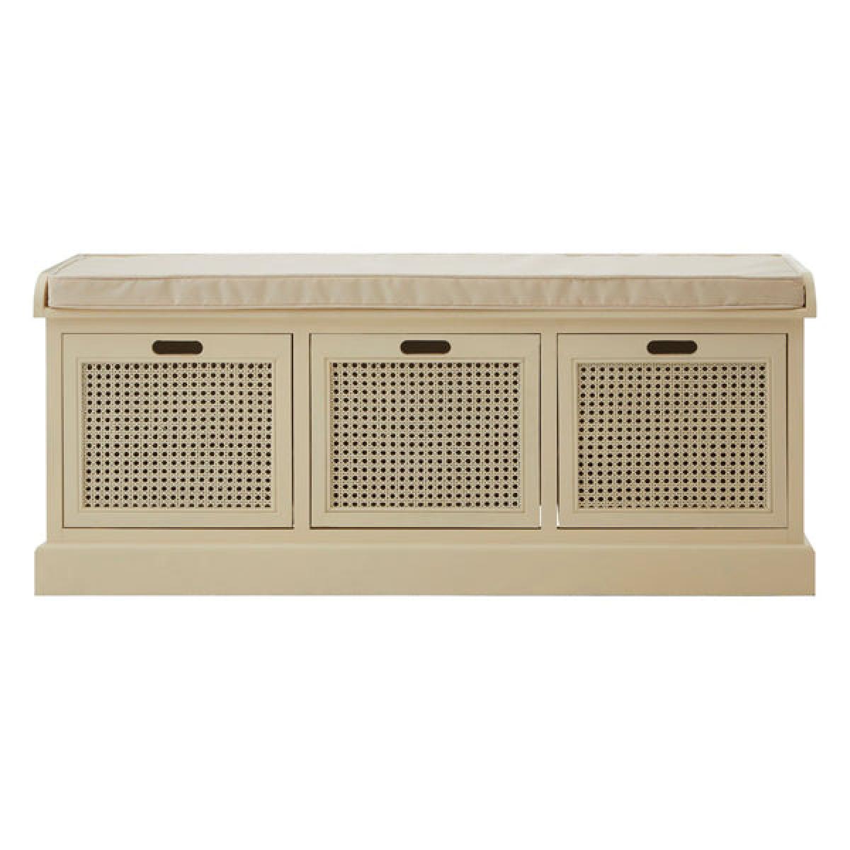 I love the Teddy's Collection Harold bench for its versatile antique white finish, which adds a charming, vintage touch to both traditional and contemporary interiors. It works particularly well in hallway or mudroom settings, where it can serve as a practical storage solution while also providing a seating area. The three drawers are ideal for organising shoes, scarves, or other small items, helping to keep spaces clutter-free. To style it effectively, consider pairing it with soft cushions or a throw on top to create an inviting, cosy feel. It also pairs beautifully with natural materials like rattan or wood accents, making it a flexible piece that can adapt to various decor styles.