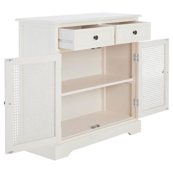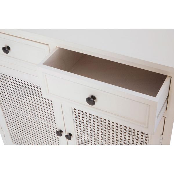 I love this one for its clean, versatile look-it works particularly well in coastal, Scandi, or minimalist interiors. The white finish makes it easy to style with a variety of colour palettes and decorative accents. Practical tips include using the top surface for decorative bowls, lamps, or plants to add personality, while the storage is ideal for organising tableware, linens, or everyday essentials. Its slightly rattan-style details add texture without overwhelming the space, making it a great statement piece that maintains a light, fresh feel. Perfect for living rooms, dining areas, or even hallways, it combines practicality with understated style.