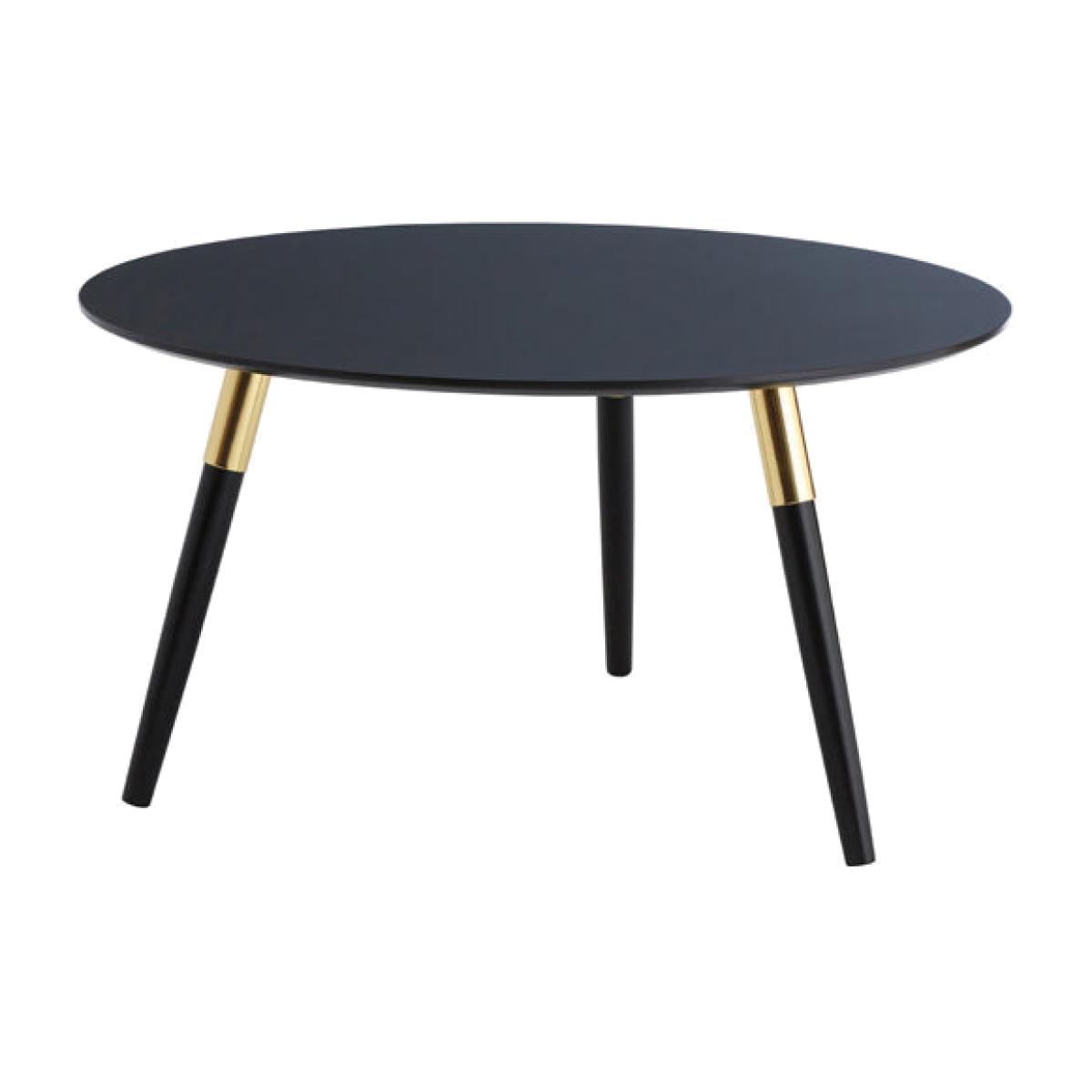 Striking black oak veneer and accented copper trim gives the Nico coffee table its stylish edge.