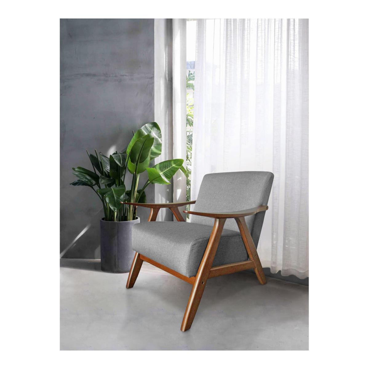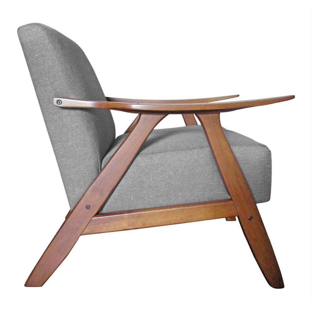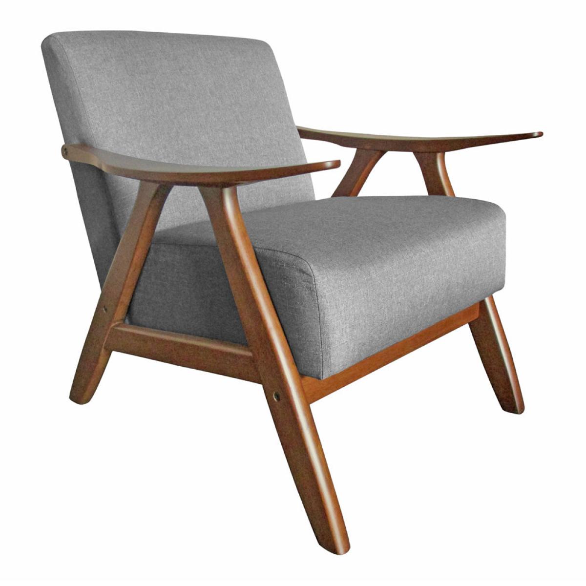 This Hoff armchair takes an iconic mid-century Dutch design to a new level. It is both superbly comfortable and a style delight!. With a focus on the highest quality filling and batting, our designers have created a masterpiece of furniture which teams a subtle grey upholstery with a beautifully carved and smoothed wooden body, finished with a dark stain and polished to a high sheen. The natural grain of the wood shines through and will enchant for many generations. This is the kind of chair you want to put your name so surely there is a place for a Hoff armchair in every home. Materials: Solid Wood Frame and Polyester Upholstered material with 90% Foam and 10% Cotton fill. Assembly Required: Yes.