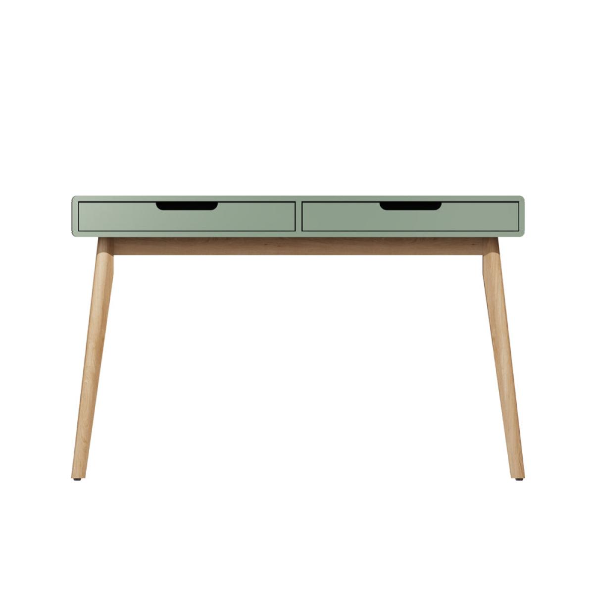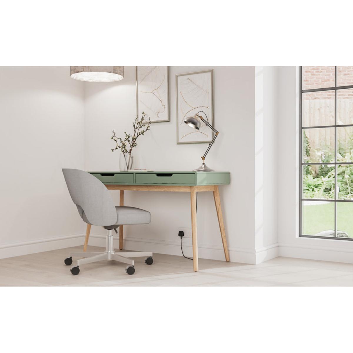 Green has been hailed as one of the best colours to use in a home office thanks to its links to nature. Harness the tranquillity and productivity-boosting benefits of green with this gorgeous desk from Teddy's Collection. Make the Knut Desk the centrepiece of a modern or Scandi-inspired home office where you will always feel inspired, motivated and organised. The top of the desk, which comes in a sophisticated sage shade, features two slimline, handle-less, under-desk drawers for extra storage. Four angled light oak legs complete the contemporary look. The Knut Desk is 75cm tall, 120cm wide and 53cm in depth.